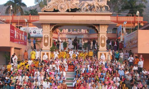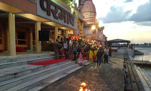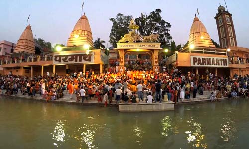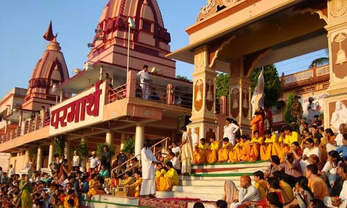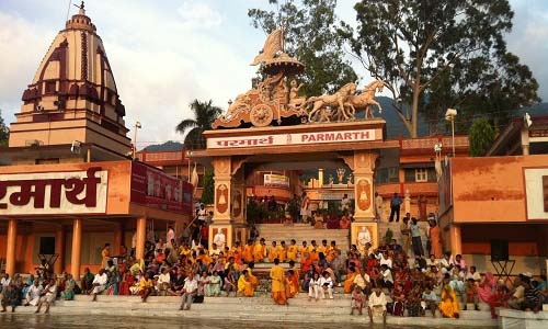Parmarth Niketan is an ashram located in Rishikesh, Uttarakhand, India. Parmarth Niketan is situated in the lap of the lush Himalayas, along the banks of the Ganges. The ashram was founded in 1942 by Pujya Swami Shukdevanandji Maharaj (1901–1965). Since 1986, Pujya Swami Chidanand Saraswatiji Maharaj is the President and Spiritual Head of Parmarth Niketan. As the largest ashram in Rishikesh with over 1000 rooms, Parmarth Niketan provides a clean, pure and sacred atmosphere as well as abundant, beautiful gardens to thousands of pilgrims, who come from all corners of the Earth. The daily activities at Parmarth Niketan include daily yoga specializing in Vinyasa yoga, general Hatha yoga and yoga Nidra. Daily activities also include morning universal prayers and meditation classes, daily satsang and lecture programs, kirtan, a world-renowned Ganga aarti at sunset attended by hundreds of visitors each day at the shore of Ganges, as well as Nature Cure and Ayurvedic treatment and training. Parmarth Niketan is the home to a 14 feet Shiva statue on the banks of Ganges which provides a perfect view to the ashram. The divine tree of heaven Kalpavriksha was planted at the premises of this ashram by Vijaypal Baghel of Himalaya Vahini. Additionally, there are frequently special cultural and spiritual programs given by visiting revered saints, acclaimed musicians, spiritual and social leaders and others. There are frequent camps in which pilgrims come from across the world to take part in intensive courses on yoga, meditation, pranayama, stress management, acupressure, Reiki, Ayurveda and other ancient Indian sciences. Parmarth Niketan is also the headquarters of the Swami Shukdevanand Trust, a non-profit, religious/spiritual organization dedicated to religion, spirituality and culture, founded in 1942 by Pujya Swami Shukdevanandji Maharaj and registered in 1962 under the Societies Registration Act. Parmarth Niketan is open to all visitors, with no discrimination on the basis of race, nationality, religion, caste or creed.