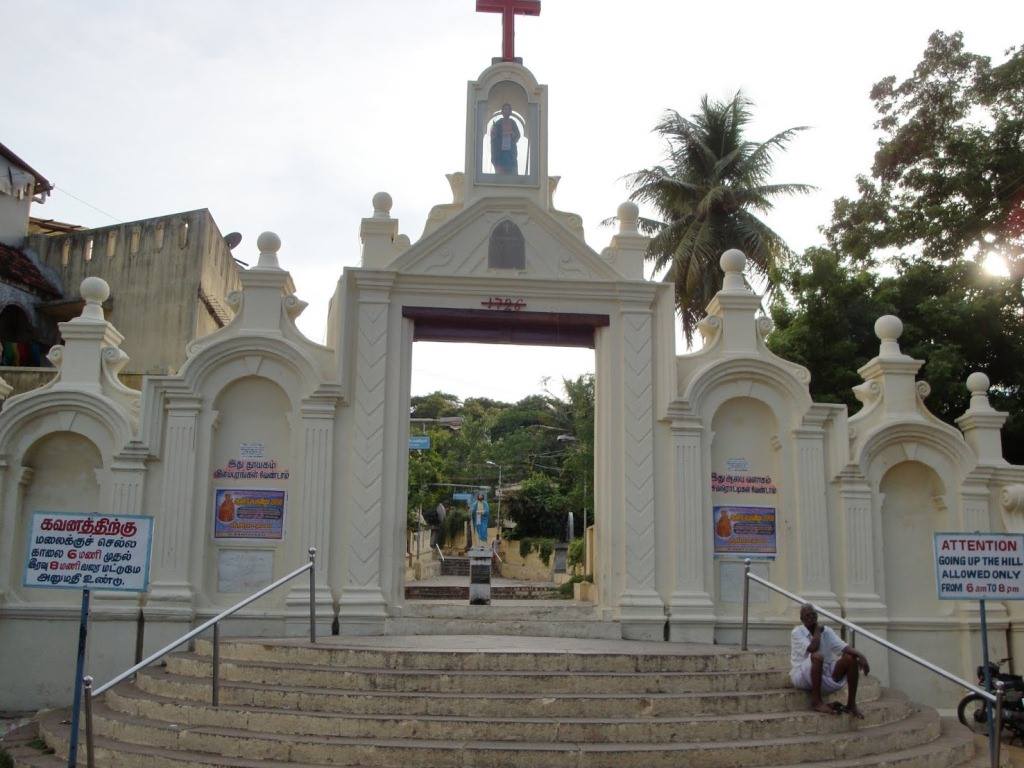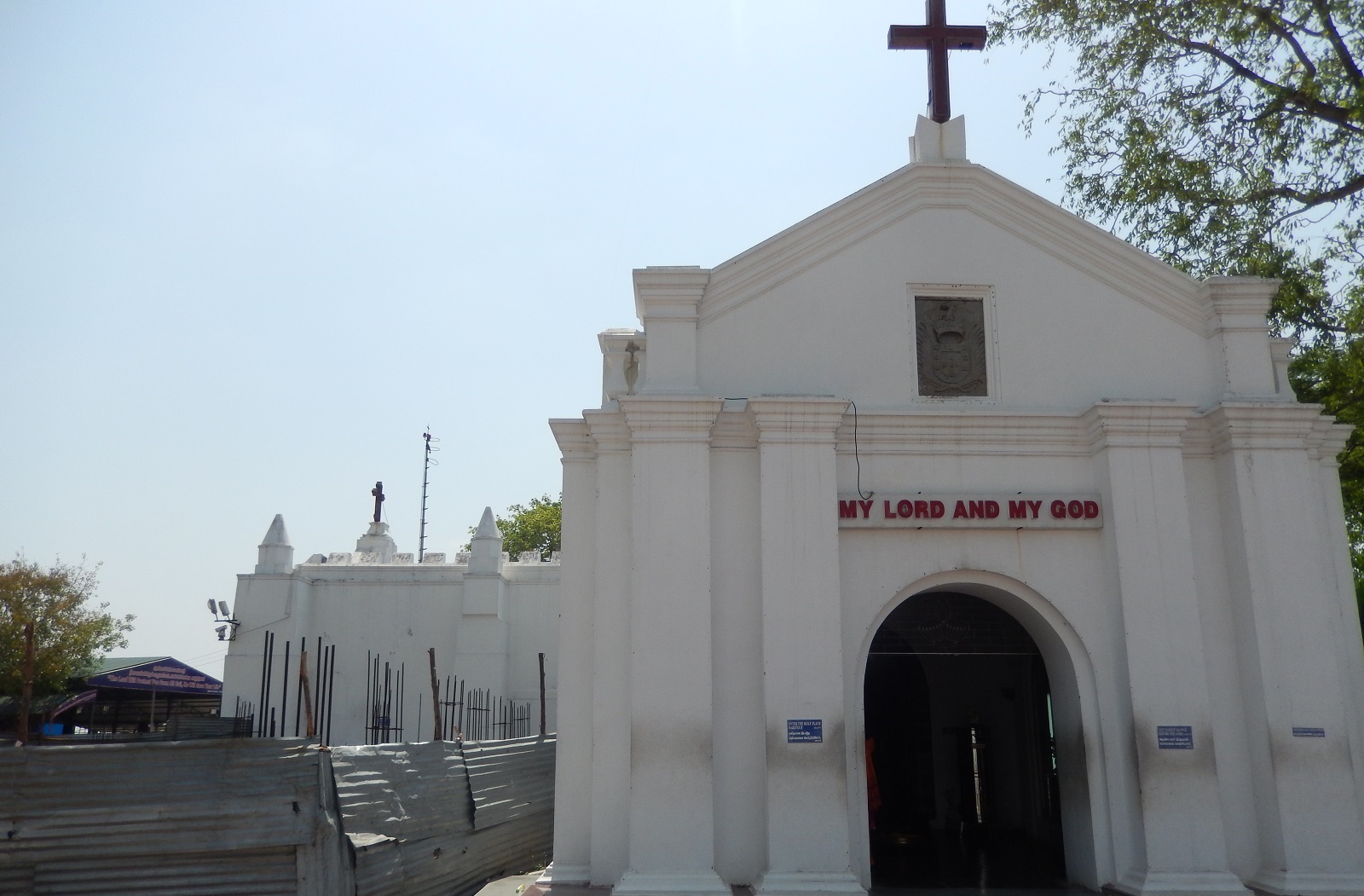 St. Thomas Mount (known in Tamil as Parangimalai) is a small hillock located in Chennai, Tamil Nadu, India, near the neighbourhood of Guindy and very close to Chennai International Airport. The ancient Syrian Christian community of India trace the origin of their church to St. Thomas the Apostle, believed to have been martyred in St. Thomas Mount. From the 17th century, this part of Chennai was populated predominantly by Anglo-Indians. The St. Thomas Garrison Church is located at the bottom of St Thomas Mount.The St. Thomas Syro Malabar Catholic church is located east of the shrine at North Silver Street , foot holds of the mountain Shrine. The neighbourhood is served by the St. Thomas Mount railway station on the southern line of the Chennai Suburban Railway Network. Integration of the Metro and MRTS with the suburban station in the neighbourhood, is expected to make the suburb the city's largest transit hub after Chennai Central. In the state assembly elections of 1967 and 1971, there was a constituency known as the Saint Thomas Mount. A shrine dedicated to "Our Lady of Expectation" (Mother Mary) was built in 1523 on top of the mount. The altar of this shrine was built on the spot where St. Thomas' death traditionally believed to have been occurred. At the northern foot of the mount, is a gateway of four impressive arches surmounted by a cross bearing the inscribed date 1547. A flight of 160 steps leads up to the summit of the mount. There are 14 stations of the cross erected on the way to the summit.