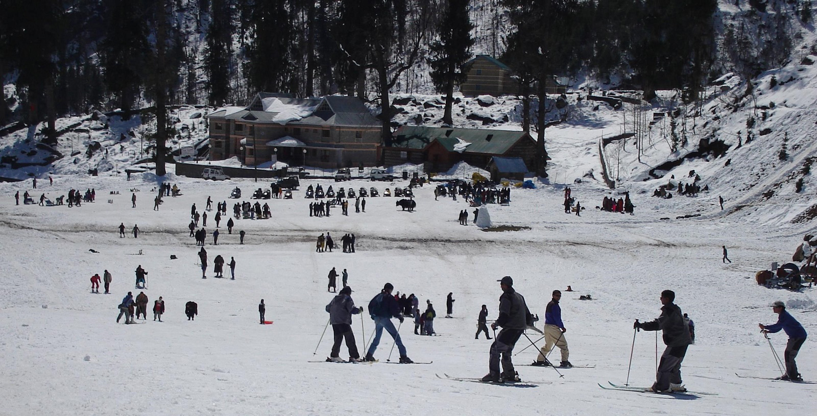 Manali is a Valley nestled in the mountains of the Indian state of Himachal Pradesh near the northern end of the Kullu Valley, at an altitude of 2,050 m (6,726 ft) in the Beas River Valley. It is located in the Kullu district, about 270 km (168 mi) north of the state capital, Shimla. The small town, with a population of 8,096, is the beginning of an ancient trade route to Ladakh and from there over the Karakoram Pass on to Yarkand and Khotan in the Tarim Basin. It is a popular tourist destination and serves as the gateway to Lahaul & Spiti district as well as Leh. Manali is located at 32.2396 N, 77.1887 E, about 40 km (25 mi) north of Kullu town. The town ranges in elevation from 1,800 m (5,900 ft) to 2,000 m (6,600 ft) in the uppermost Old Manali section. Manali is named after the Sanatan Hindu lawgiver Manu. The name Manali is regarded as the derivative of 'Manu-Alaya' which literally means 'the abode of Manu'. Legend has it that sage Manu stepped off his ark in Manali to recreate human life after a great flood had deluged the world. Manali lies in the North of Kullu Valley. The valley is often referred to as the 'Valley of the Gods'. Old Manali village has an ancient temple dedicated to sage Manu. The British introduced apple trees in the area. The first apple orchard was set up by the British near Patlikuhl, prior to this no Apple trees grew in the area. To this day, apple—along with plum and pear—remain the best source of income for the majority of inhabitants. Both Rainbow and Brown Trout was also introduced into the rivers and streams of the area by the colonisers. Before other luminaries started visiting Manali, the Indian nation's first Prime Minister Pt. Jawaharlal Nehru favoured this as a holiday destination in the mountains. With the increase in disposable incomes and somewhat owing to the rise of disturbances in Kashmir in the late 1980s, Manali witnessed a surge in tourist traffic. This once quiet village was transformed into a bustling town with numerous homestays as well as the occasional luxury boutique hotel and spa. During the warmer summer months, cafes and restaurants can be seen doing brisk business. The nearest airport Bhuntar Airport (IATA code KUU) is at Bhuntar town, situated on NH21 about 50 km (31 mi) south of Manali and 10 km (6.2 mi) south of Kullu town. The airport is also known as Kullu-Manali airport and has more than a kilometre long runway. Air India has regular flights to the airport from New Delhi. Recently another operator 'Himalayan Bulls' has started flights on Kullu-Chandigarh-Kullu sector thrice a day http://himalayanbulls.com/ International connecting flights naturally are from Delhi's IGI Airport. Manali can be reached from Delhi by national highway NH 1 up to Ambala and from there NH 22 to Chandigarh and from there by national highway NH21 that passes through Bilaspur, Sundernagar, Mandi and Kullu towns. The road distance from Chandigarh to Manali is 310 km (190 mi), and the total distance from Delhi to Manali is 570 km (350 mi). Luxury buses (including Volvos) usually ply overnight on this route and are available from all major bus terminals. Besides 12 Non-AC services, HRTC (Himachal Road Transport Corporation) runs five daily Volvo and AC buses on Delhi-Manali route[6] and two separate Volvos by HPTDC (Himachal Tourism Development Corporation). There is no close railhead available close to Manali. The nearest broad gauge railheads are at Una 250 km (155 mi) away, Kiratpur Sahib 268 km (167 mi), Kalka (275 km (171 mi)), Chandigarh (310 km (193 mi)), and Pathankot (325 km (202 mi)) . The nearest narrow gauge railhead is at Joginder Nagar (175 kilometres (109 mi)). The Kalka–Shimla_Railway is nostalgic narrow gauge route culminating at the state capital of Shimla wherefrom one has to travel by road to Manali. See Bilaspur-Mandi-Leh Railway for the proposed railway line through this area. As of 2016 no activity is happening on this front. Environmental Concerns: Manali has witnessed a flurry of activity related to hydroelectric power and tourism. Unplanned and rampant construction has led to severe depletion of forests and pollution of river bodies, along with garbage being disposed on the side of the mountains. There has been a loss of habitat to various species of fauna, not limited to the Himalayan Monal, incidentally the state bird of Himachal Pradesh. This prompted the National Green Tribunal to intervene and limit vehicular movement on the popular Manali - Rohtang Pass highway, as well as Solang Valley. This has somewhat arrested the damage, however a lot still needs to be done.