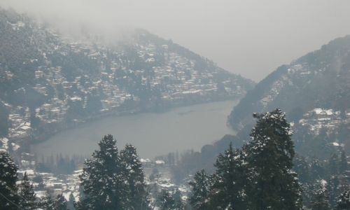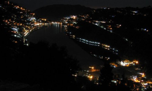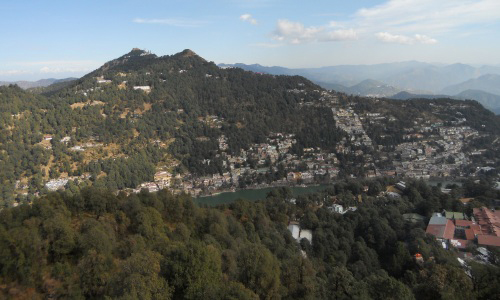 Nainital About is a popular hill station in the Indian state of Uttarakhand and headquarters of Nainital district in the Kumaon foothills of the outer Himalayas. Situated at an altitude of 2,084 metres (6,837 ft) above sea level, Nainital is set in a valley containing a pear-shaped lake, approximately two miles in circumference, and surrounded by mountains, of which the highest are Naina (2,615 m (8,579 ft)) on the north, Deopatha (2,438 m (7,999 ft)) on the west, and Ayarpatha (2,278 m (7,474 ft)) on the south. From the tops of the higher peaks, "magnificent views can be obtained of the vast plain to the south, or of the mass of tangled ridges lying north, bounded by the great snowy range which forms the central axis of the Himalayas." Nainital is located at 29.38°N 79.45°E. The slopes of the nearby mountains are most populated, with an elevation ranging from 1,940–2,100 m (6,360–6,890 ft). The highest point nearby is Naina Peak or China Peak, with an elevation of 2,619 m (8,593 ft). Nainital has temperate summers, maximum temperature 27 °C (81 °F); minimum temperature 7 °C (45 °F), during which its population increases more than fivefold with an annual influx of tourists predominantly from the plains of northern India. In winter, Nainital receives snowfall between December and February with the temperatures varying between a maximum of 15 °C (59 °F) and a minimum of -3 °C (27 °F). The Kumaon Hills came under British rule after the Anglo-Nepalese War (1814–16). The hill station town of Naini Tal was founded only in 1841, with the construction of the first European house (Pilgrim Lodge) by P. Barron, a sugar trader from Shahjahanpur. In his memoir, he wrote: "It is by far the best site I have witnessed in the course of a 1,500 miles (2,400 km) trek in the Himalayas." In 1846, when a Captain Madden of the Bengal Artillery visited Naini Tal, he recorded that "houses were rapidly springing up in most parts of the settlement: some towards the crest of the limitary ranges were nearly 7,500 ft (2,300 m) above sea level: the rugged and woody Anyarpatta Aashish (Anyar-patt – in Kumaoni means – complete blackout. The reason for this nomenclature by the locals was because there were minimal sun rays due to its location and dense forests) was being gradually planted and that the favourite sites were on the undulating tract of forest land which stretched back from the head of the lake to the base of China and Deopatta (Camel's Hump). The church, St. John in the Wilderness, was one of the earliest buildings in Nainital, followed by Belvedere, Alma lodge, Ashdale Cottage(1860)..." Soon, the town became a health resort favoured by British soldiers and by colonial officials and their families trying to escape the heat of the plains. Later, the town became the summer residence of the governor of the United Provinces.