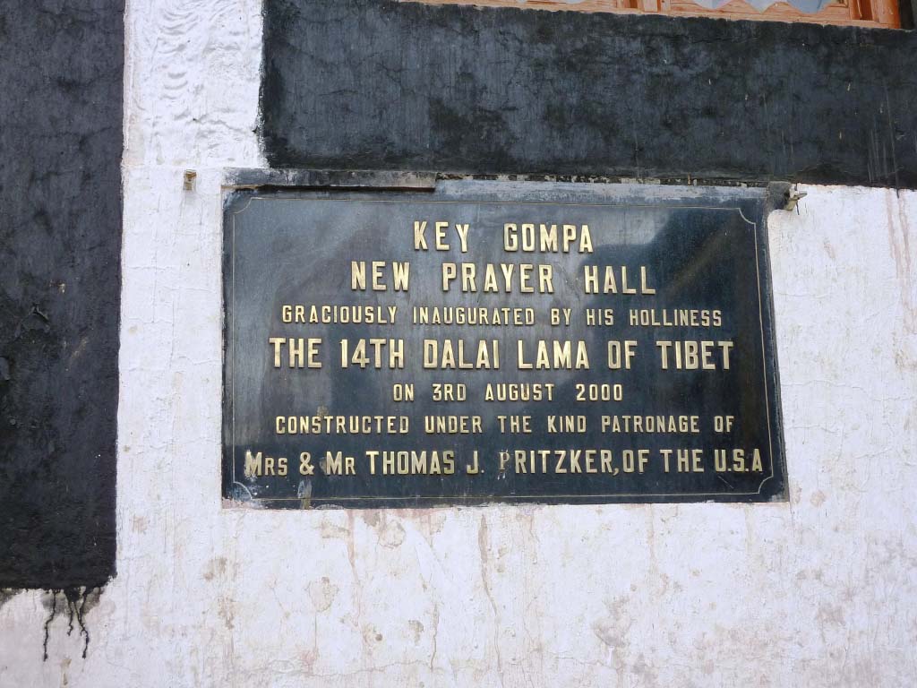 Kye Gompa is a Tibetan Buddhist monastery located on top of a hill at an altitude of 4,166 metres (13,668 ft) above sea level, close to the Spiti River, in the Spiti Valley of Himachal Pradesh, Lahaul and Spiti district, India. It is the biggest monastery of Spiti Valley and a religious training centre for Lamas. It reportedly had 100 monks in 1855. Kye Gompa is said to have been founded by Dromtön (Brom-ston, 1008-1064 CE), a pupil of the famous teacher, Atisha, in the 11th century. This may however, refer to a now destroyed Kadampa monastery at the nearby village of Rangrik, which was probably destroyed in the 14th century when the Sakya sect rose to power with Mongol assistance. Kye was attacked again by the Mongols during the 17th century, during the reign of the Fifth Dalai Lama, and became a Gelugpa establishment. In 1830, it was sacked again during the wars between Ladakh and Kulu. In 1841, it was severely damaged by the Dogra army under Ghulam Khan[disambiguation needed] and Rahim Khan. Later that same year, it suffered more damage from a Sikh army. In the 1840s, it was ravaged by fire and, in 1975, a violent earthquake caused further damage which was repaired with the help of the Archaeological Survey of India and the State Public Works Department. The walls of the monastery are covered with paintings and murals, an example of the 14th century monastic architecture, which developed as the result of Chinese influence. Kye monastery has a collection of ancient murals and books, including Buddha images. There are three floors, the first one is mainly underground and used for storage. One room, called the Tangyur is richly painted with murals. The ground floor has the beautifully decorated Assembly Hall and cells for many monks. Kye Gompa now belongs to the Gelugpa sect, along with Tabo Monastery and Dhankar Gompa, one of three in Spiti. "The monastery of Kee, for instance, accommodates nearly 250 monks, who reside within the sacred walls in winter, and stay during the summer with their parents or brothers, working in the fields, or employed in carrying travellers' goods. These monasteries have their regular heads, or abbots, and the higher ecclesiastical titles can only be obtained by the candidates proceeding in person to either Shigatzee (Shigatse) or Lhassa (Lhasa)." A celebration of its millennium was conducted in 2000 in the presence of the Dalai Lama. A new Prayer Hall was inaugurated on 3 August 2000 by HH The Fourteenth Dalai Lama.