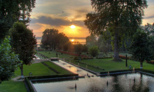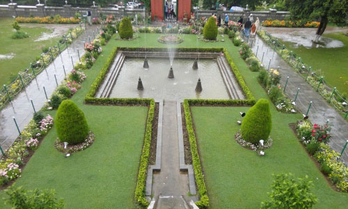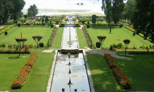 Nishat Bagh is a terraced Mughal garden built on the eastern side of the Dal Lake, close to Srinagar in the state of Jammu and Kashmir, India. It is the second largest Mughal garden in the Kashmir Valley. The largest in size is the Shalimar Bagh, which is also located on the bank of the Dal Lake. ‘Nishat Bagh’ is Urdu, which means "Garden of Joy," "Garden of Gladness" and "Garden of Delight." Located on the bank of the Dal Lake, with the Zabarwan Mountains as its backdrop, Nishat Bagh is a garden of bliss that commands a magnificent view of the lake beneath the snow-capped Pir Panjal mountain range that stands far away to the west of the valley. The Bagh was designed and built in 1633 by Asif Khan, elder brother of Nur Jehan. An interesting anecdote of jealousy of the Emperor Shah Jahan on beholding such a delightful garden, which almost shutdown the garden for some time, is narrated. When Shah Jahan saw this garden, after its completion in 1633, he expressed great appreciation of its grandeur and beauty. He is believed to have articulated his appreciation three times to Asif Khan, his father-in- law, with the hope that he would gift it to him. As no such offer was made by Asif Khan, Shah Jahan was piqued and ordered closure of the water supply to the garden. Then, for some time, the garden was deserted. Asif Khan was desolate and heartbroken; he was uninterested in the sequence of events. When he was resting under the shade of a tree, in one of the terraces, his servant was bold enough to turn on the water supply source from the Shalimar Bagh. When Asif Khan heard the sound of water and the fountains in action he was startled and immediately order closure of water supply as he feared the worst reaction from the emperor for this wanton act of disobedience. Fortunately for the servant and Asif Khan, Shaha Jahan, who had heard about this incident at the garden, was not disturbed or annoyed by the disobedience of his orders. Instead, he appreciated the servant for loyal service to his master and then ordered full restoration rights for the supply of water to the garden to Asif Khan, his Prime Minister and father-in-law. Mughal Princess Zuhra Begum was buried him garden she was the daughter of Mughal Emperor Alamgir II, and granddaughter of Emperor Jahandar Shah. Even though the layout of Nishat Bagh was based on the basic conceptual model of the Persian gardens, it had to be remodelled to fit the topographic and water source conditions at the site chosen in the Kashmir valley. The plan, instead of being central with four radiating arms in a square pattern as in the case of Chahar (suited for a flat country side), was changed to an axial stream flow design to fit the hill condition with water source originating at the top of the hill end. This resulted in planning a rectangular layout rather than a square layout. This helped in dispensing with the long side arms. Thus, a rectangular layout with east-west length of 548 metres (1,798 ft) and width of338 metres (1,109 ft) was adopted. Thus, Nishat Bagh as laid out now is a broad cascade of terraces lined with avenues of chinar and cypress trees, which starts from the lakeshore and reaches up to an artificial façade at the hill end. Rising from the edge of the Dal Lake, it has twelve 12 terraces representing twelve Zodiacal signs. However, it has only two sections, namely the public garden and the private garden for the Zanana or harem vis-à-vis the four sections of the Shalimar Bagh; this difference is attributed to the fact that the latter Bagh catered to the Mughal Emperor, while Nishad Bagh belonged to a man of his court, a noble. There are, however, some similarities with the Shalimar Bagh, such as the polished stone channel and terraces. The source of water supply to the two gardens is the same. Built in an east-west direction, the top terrace has the Zenana garden while the lowest terrace is connected to the Dal Lake. In recent years, the lowest terrace has merged with the approach road. A spring called the Gopi Thirst provides clear water supply to the gardens. There are a few old Mughal period buildings in the vicinity of the Bagh. The central canal, which runs through the garden from the top end, is 4 metres (13 ft) wide and has a water depth of 20 centimetres (7.9 in). Water flows down in a cascade from the top to the first terrace at the road level, which could be also approached from the Dal Lake through a shikara ride. The water flow from one terrace to the next is over stepped stone ramps that provide the sparkle to the flow. At all the terraces fountains with pools are provided, along the water channel. At channel crossings, benches are provided for people to sit and enjoy the beauty of the garden and the cascading flows and fountain jets. The details of the twelve terraces have been recorded as originally built: 1)The first terrace is a water collection chamber that is also linked to the side flow from the garden. 2)The second terrace is accessed through a gate. This terrace has five fountains that is supplied water from the third terrace, from where it flowed to the lowest terrace. 3)The third terrace has a different design. The water chute has five arched open niches in the front and similar niches on the sides. A pavilion (baradari), a two-storied structure, which existed here when it was originally built, has since been dismantled. Stairways, on either side of the channel lead to the third terrace, which has a square chamber with five fountains. Moving up the flight of steps (four steps) on either side of the channel leads to the fourth terrace. 4)The fourth terrace has two levels namely, a water channel and a square pool. Stairways with 7 steps lead to the fifth terrace. 5)The fifth terrace, where a stone bench is provided across the channel to enjoy the scenic beauty. This also has a square chamber with five fountains. 6)The sixth terrace is at two levels with five fountains and distinctive paving pattern.t 7)The sev