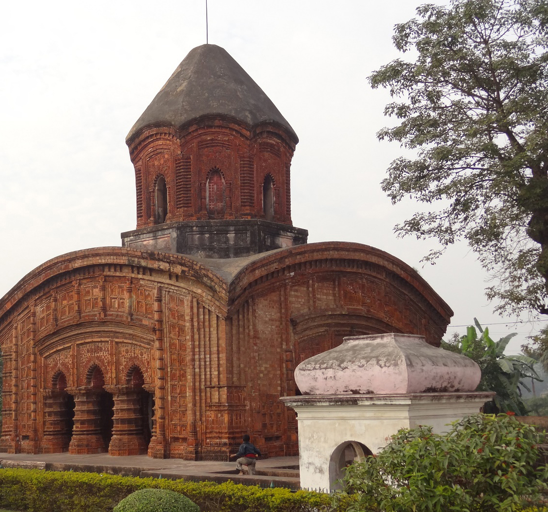 Ananta Basudeba temple is a temple of Lord Krishna in the Hangseshwari temple complex in Banshberia, in the Hooghly District in the Indian state of West Bengal. Built by Raja Rameswar Datta in 1679, this temple is noted for the exquisite terra cotta works on its walls. It is built in the traditional eka-ratna style, with curved cornices. The tower on top of the temple is octagonal. The terracota works depict stories from the great Indian epics Ramayana and Mahabharata, as well as from lilas of Krishna.