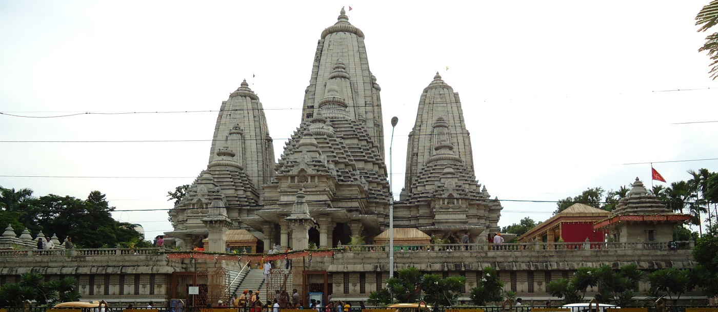 Birla Mandir in Kolkata, India, is a Hindu temple on Asutosh Chowdhury Avenue, Ballygunge, built by the industrialist Birla family. This temple is open in the morning from 5.30 A.M. to 11 A.M. and in the evening from 4 .30 P.M. to 9 P.M. On Janmashtami, the birthday of Krishna, devotees come from far away places to pay their respect to the deities. The construction of the temple began in 1970. It took 26 years to complete the entire structure. The construction was supervised by the Sompuras. On Wednesday, the 21st of February, 1996, the Pran Prathistha was done by Swami Chidanandaji Maharaj in the morning. Dr. Karan Singh inaugurated the temple the same day. The main temple houses statues of deities Krishna and Radha. The left side temple shikhar (dome) houses goddess Durga, the Hindu goddess of Shakti, the power. The right side dome of the temple houses Shiva in meditation mode. Spread on 44 kathas of land, this temple built of white marble bears resemblance to the renowned Lingaraj Temple of Bhubaneswar. Birla Mandir also showcases pictorial depiction of scriptures of Bhagavad Gita in its stone engravings and some intricate Rajasthani temple architecture. Designed by the architect Nomi Bose.