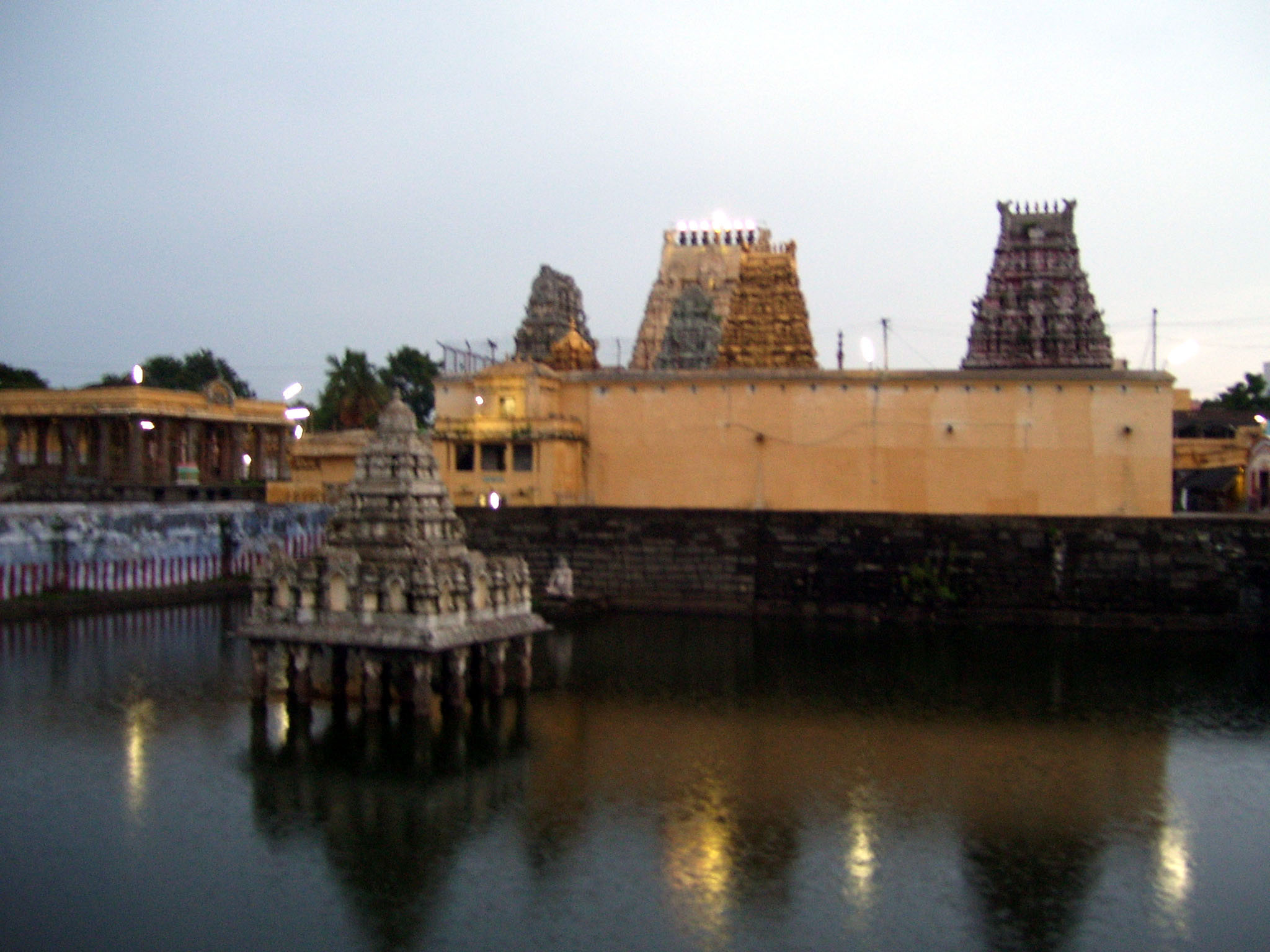 The Kamakshi Temple is an ancient Hindu Temple dedicated to Kamakshi, one of the forms of Goddess Parvati. It is located in the historic city of Kanchipuram, near Chennai, India The Meenakshi Temple in Madurai, the Akilandeswari temple in Thiruvanaikaval near Tiruchirappalli and this Kamakshi are the important centers of worship of Parvati, in the state of Tamil Nadu. The Temple was most probably built by the Pallava kings, whose capital was Kanchipuram. The Image of the main Deity, Kamakshi, is seated in a majestic Padmasana, an yogic posture signifying peace and prosperity, instead of the traditional standing pose. Goddess holds a sugarcane bow and bunch of flowers in the lower two of her arms and has a pasha (lasso), an ankusha (goad) in her upper two arms. There is also a parrot perched near the flower bunch. There are no other Parvati temples in the city of Kanchipuram, apart from this temple, which is unusual in a traditional city that has hundreds of traditional temples. There are various legends that account for this fact. One of them according to Kamakshivilasa is that Goddess had to absorb all the other shakthi forms to give a boon to Kama, the Vedic angel of desire.[1] Another legend attributes it to the Raja Rajeswari pose of the deity that signifies an absolute control over the land under Her control.[2] Legend has it that Kamakshi offered worship to a Shivalingam made out of sand, under a mango tree and gained Shiva's hand in marriage. Adi Shankaracharya, the famous 8th century CE scholar and saint, re-established the Sri Chakra in this Kamakshi Devi temple in the trough-like structure in that shrine. Four worship services are offered each day. The annual festival falls in Spring, in the Tamil month of Masi, which runs from mid-March to mid-April. During this time the chariot festival (Ther) and float festival, (Theppam) are held.[3] Other festivals include Navaratri, Aadi and Aippasi Pooram, Sankara Jayanthi and Vasanta Utsavam in the Tamil month of Vaikasi. All Fridays are considered sacred, though the Fridays in the Tamil months of Adi (mid-July to mid-August) and Thai (mid-January to mid-February) are celebrated. The Devi in this Adi Kamakshi temple is called by various names like Kirtimati, Devagarbha in extant Tantric works like Tantrachudamani. She has four hands containing in each of them respectively, Ankusa, PAsa, Abhaya and a Kapala. This description corresponds to those extant old tantric works.