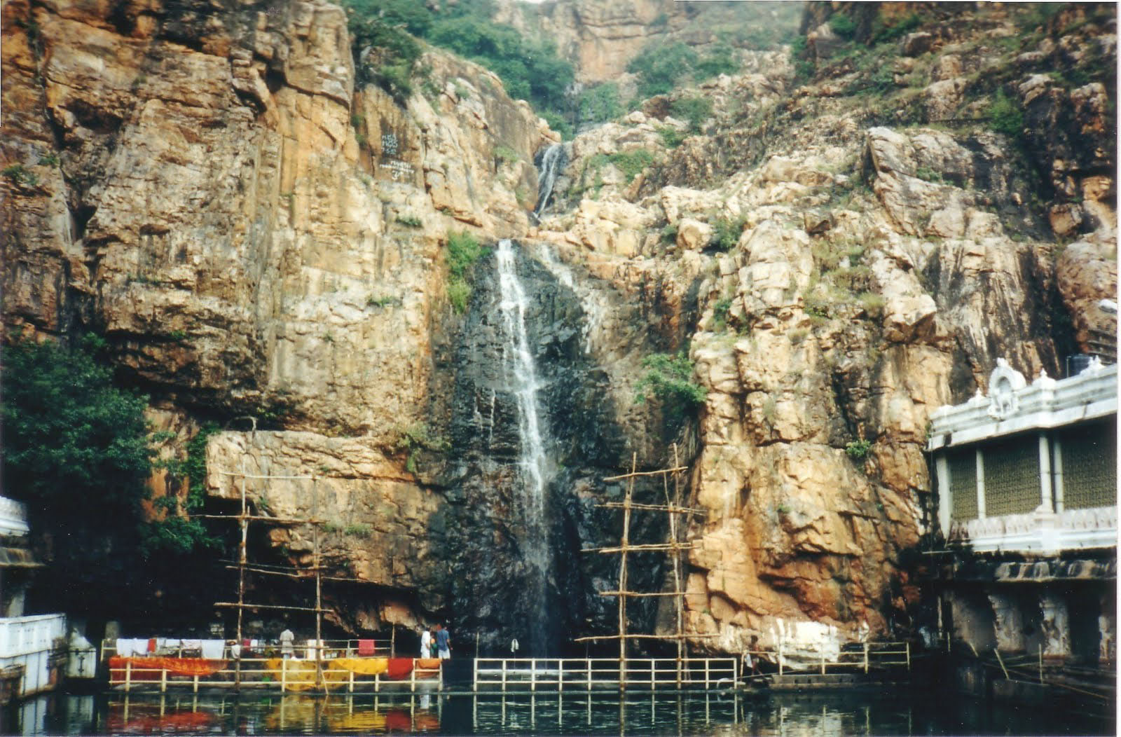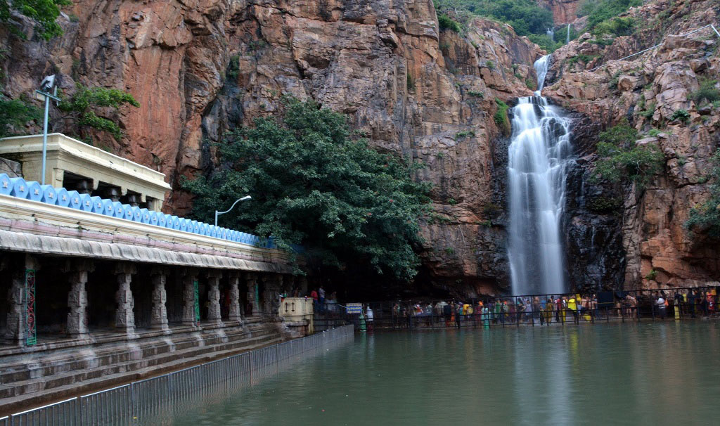 Kapila Theertham is a famous Saivite Temple and Theertham, located at Tirupati in the Chittoor District of Andhra Pradesh, India. The idol is believed to be installed by Kapila Muni and hence Lord Siva here is referred to as Kapileswara. The temple stands at the entrance to a mountain cave in one of the steep and vertical faces at the foot of the Tirumala hills which are part of Seshachalam Hills, where the waters of the mountain stream fall directly into Temple Pushkarini known as "Kapila Theertham". A huge stone statue of a seated bull "Nandhi", Lord's Shiva's steed, greets devotees and passersby at the entrance to the temple. The Temple and Theertham had derived its name from Kapila Muni. According to Temple Legend Kapila Muni had performed penance to Lord Siva at this place and blissed with the Muni's devotion, Lord Siva and Parvathi presented themselves. The Lingam is believed to be self-manifested. Kapila muni is believed to emerged from the Bilam(Cavity) in the Pushkarini(Theertham) on to the earth. Though this temple's significance has diminished due to the hugely popular neighboring Temples in Tirumala and Tiruchanoor, it received very good patronage from the Kings of Vijayanagara in the 13th thru 16th centuries, especially Saluva Narasimha Deva Raya, and the eternally famous Sri Krishna Deva Raya, and some of the later rulers like Venkatapathi Raya, and Aliya Ramaraya, Sri Krishna Deva Raya's Son-in-law. During 'Kartika' month on the occasion of its "mukkoti" on the 'Purnima' (full moon) day, all the teerthas situated in the three world's merge into this Kapila Teertham at noon for ten 'Ghatikas'(one ghatika is equivalent to 24 minutes). It is believed that persons bathing in it at that auspicious time will attain salvation from the cycle of birth and death ('Brahmaloka'). Moreover, those who have never offered Pindam (thidhi or thadhhina) to their departed ancestor souls can do it here and wash off your sins for non performance of it in past. The temple celebrates all important festivals of Shaivism which includes Maha Shivaratri, Karthika Deepam, Vinayaka Chavithi, Adikirtika etc. Kapileswara Swamy Brahmotsavams is the biggest event of the temple celebrated by TTD during the month of February. It is a nine-day event where the processional deity of Lord Shiva and Parvathi will taken procession on different vahanams starting with Hamsa vahanam and ending with Trishula snanam(celestial bath to Siva Trident).