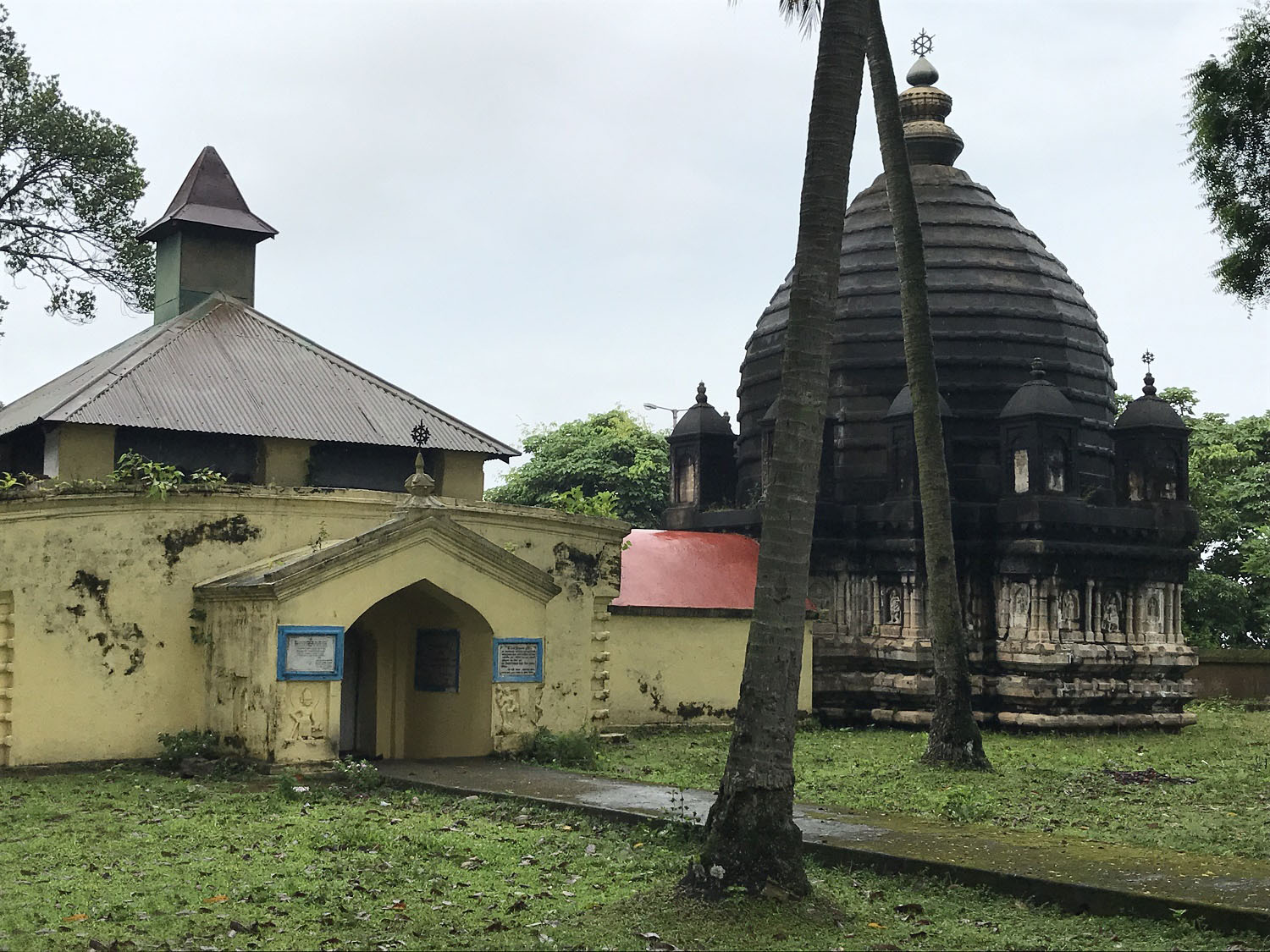 Aswaklanta Temple was built by Ahom King Shiva Singha in 1720. Shiva Singha built most of the biggest Hindu temples of Assam including the famous Shiva Dole of Sivasagar. The temple is situated by the bank of mighty Brahmaputra. There are two temples in that holy place. One situated in the foot hill and the other in the up hill - Kurmayanardan and Anantasayi by name. The place where the temples were built holds hindo mythological importance. Mythology says that while Lord Krishna searched for Narakasur to kill him, his horse got tired in this place.This is how this place was named Aswa-Klanta. Aswa means 'Horse' and Klanta means 'Tired' in Assamese. According to another legend, horses belonged to Arjun, the great Pandava and friend of Krishna, were persuaded in this place to stay back from the better scene so that Abhimanyu could get killed. It was a conspirancy and called 'abhikranta' in assamese. From this word the place was named as Aswa-krata. And later it became Aswaklanta in popular language. The temple was damaged in the great earth quake of Assam in 1897. But it was reapired under patronage of lord Kurzon, then viceroy of Assam. Formally there was a Kunda, a place of sacrifice near the temple. Now this Kunda does not exist because it was eroded by the river Brahamputra. Inside the temple, there are two images one of Janardana and the other of Anantasai Vishnu. The later is a fine art specimen of eleventh century. There is one stone inscription on the body of the temple.