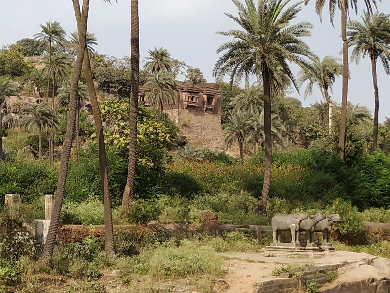 Achalgarh is a fort situated about 11 kilometres (6.8 mi) north of Mount Abu, a hill station in Rajasthan, India. The fort was originally built by the Paramara dynasty rulers and later reconstructed, renovated and named as Achalgarh by Maharana Kumbha in 1452 CE, one of the 32 forts built during his reign. The fort is in a dilapidated condition now. The first gate of the fort is known as Hanumanpol, which served as the entrance to the lower fort. It comprises two towers built of large blocks of grey granite. After some ascent, stands Champapol, the second gate of the fort, which served as the entrance to the inner fort. There are some features of historical and religious importance in and around the fort. Achaleshwar Mahadev Temple is just outside the fort; the toe of Lord Shiva is worshipped there and a brass Nandi is also located there. Near the temple there are three stone buffaloes standing around a pond. There are Jain temples in the fort. These were built in 1513.