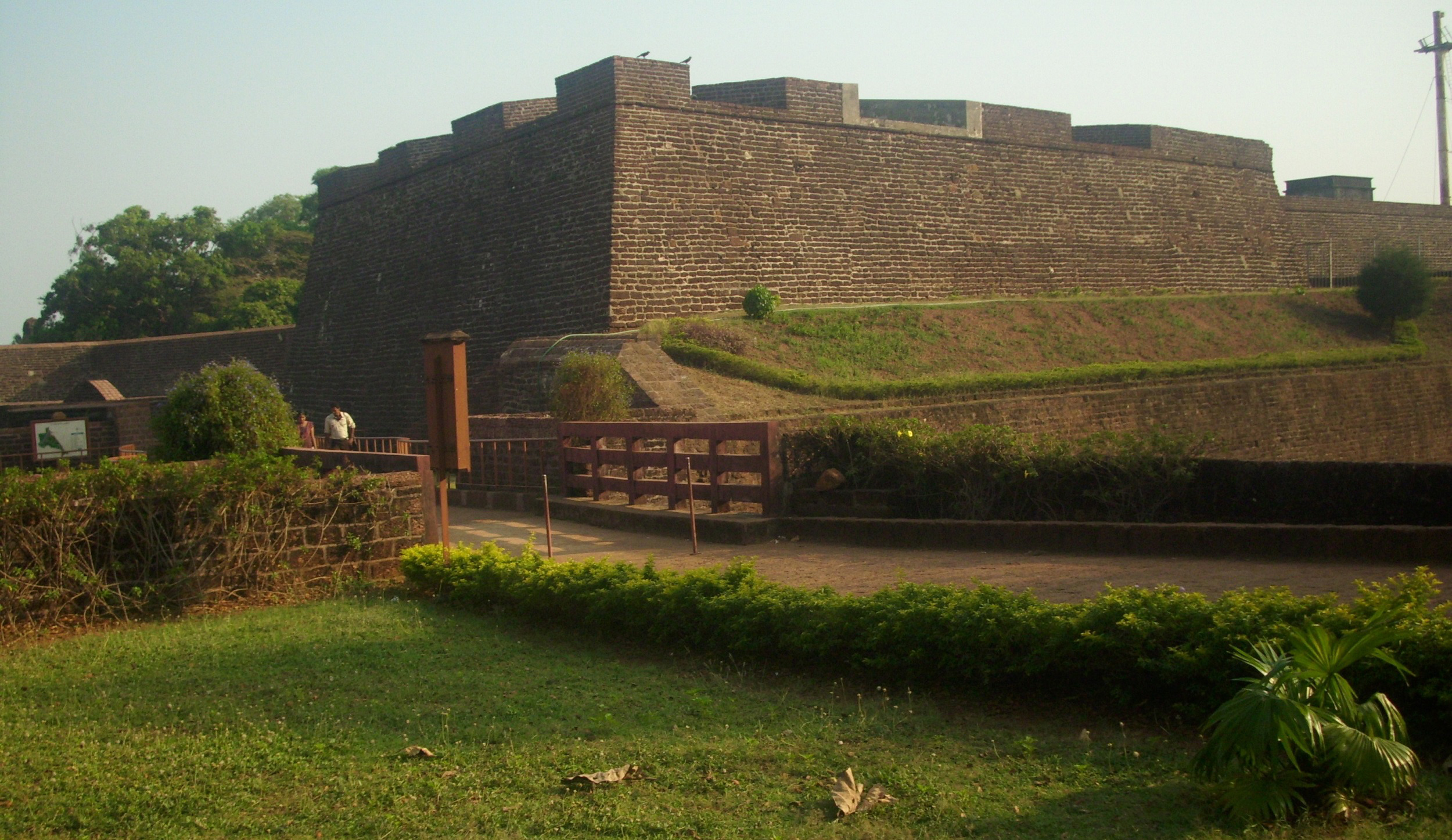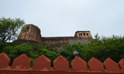 Akhnoor Fort is on the right bank of Chenab River. Construction was started by Mian Tej Singh in 1762 AD and completed by his successor Raja Alum Singh in 1802. The fort has high fortification walls with bastions at regular intervals and is crowned with battlements. There are two-storeyed watch-towers at the corners, which are crowned by battlements and merlons. The fort has two parts which are bifurcated by a wall with a gate leading to the palace on the southern side. The palace is two-storeyed, and the walls facing the courtyard have decorated arches, some of which contain mural paintings. Access to Akhnoor Fort is obtained through both the river sides and the northern side. Formerly, a large part of the fort was in ruins; conservation work in progress.