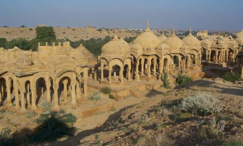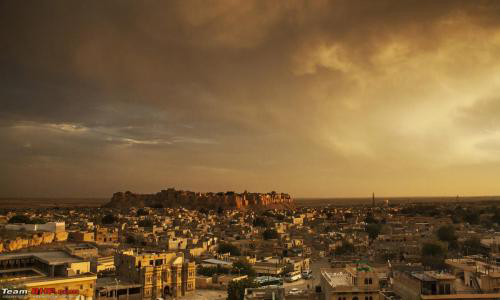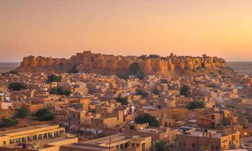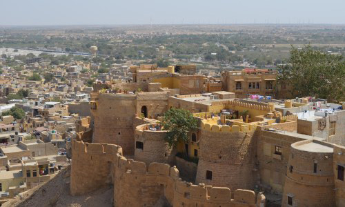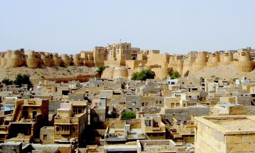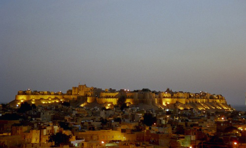 Jaisalmer Fort is one of the largest fortifications in the world. It is situated in the city of Jaisalmer, in the Indian state of Rajasthan. It is a World Heritage Site. It was built in 1156 AD by the Rajput ruler Rawal Jaisal, from whom it derives its name. (Rawal Jaisal's son was Shalivahan II; Manj and Bhati Rajputs are descended from him.) The fort stands amidst the sandy expanse of the great Thar Desert, on Trikuta Hill, and has been the scene of many battles. Its massive yellow sandstone walls are a tawny lion colour during the day, fading to honey-gold as the sun sets, thereby camouflaging the fort in the yellow desert. For this reason, it is also known as the Sonar Quila or Golden Fort. The fort is located in the very heart of the city, and is one of the most notable monuments in the locality. In 2013, at the 37th session of the World Heritage Committee held in Phnom Penh, Cambodia, Jaisalmer Fort, along with 5 other forts of Rajasthan, was declared a UNESCO World Heritage Site under the group Hill Forts of Rajasthan. The fort was built by Rawal Jaisal in 1156 CE. Jaisal conspired with the Sultan of Gaur to dispose his nephew Bhojdev from his territory. The other important event of the fort was during 1276 when King Jetsi strengthened the fort against the invading Sultan of Delhi. The 56 bastions were manned by 3,700 soldiers. After eight years of invasion and siege, the Sultan's army finally breached and destroyed the castle. Bhatis took control of the fort, but had no means to repair it. In 1306, Dodoo was elected the Rawal for his bravery for ejecting the Rathors. He subsequently took up the work of repairing and strenghening the fort. During the medieval period, the city's location along the Silk Road enabled it to serve as a major center of international trade, and as a warehousing facility for such trade. As such, it facilitated trade and commerce between Persia, Arabia, Egypt, Africa and China. The offering of such services for such commerce required a dependable means of security, and thus the fort came into being. The fort contains 3 layers of walls. The outer or the lower layer is made out of solid stone blocks and it reinforces the loose rubble of Trikuta Hill. The second, or middle, wall snakes around the fort. From the innermost, or third, wall, the Rajput warriors once hurled boiling oil and water as well as massive blocks of rock at their enemies, who would become entrapped between the second and third walls. The defences of the fort include 99 bastions, of which 92 were built between the period of 1633-47. Ala-ud-din Khilji attacked and captured the fort in the 13th century and managed to hold it for 9 years. During the siege of the fort the Rajput women committed Jauhar. The second battle at the fort began in 1541, when Mughal emperor Humayun first attacked the fort city. The Rawal was eventually overwhelmed by the repeated assaults of the Mughal emperors and finally agreed to parly with Akbar, Humayan's successor, in 1570, offering his daughter in marriage to the emperor in the process. The fort remained under the control of Mughals until 1762 when Maharawal Mulraj took control of the fort. Due to its isolated location, the fort escaped the ravages of the Marathas. The treaty between the East India Company and Mulraj on 12 December 1818 allowed the Mulraj to retain control of the fort and provided for protection from invasion. After the death of Mulraj in 1820, his grandson Gaj Singh assumed the reins of the fort. With the advent of British rule, the emergence of maritime trade and the growth of the port of Bombay led to the gradual economic decline of Jaisalmer. After independence and the Partition of India, the ancient trade route was totally closed, thus sealing the fate of the city. Nonetheless, the continued strategic importance of Jaisalmer was demonstrated during the 1965 and 1971 wars between India and Pakistan Although at one point the entire population of Jaisalmer lived within the fort, it today has a resident population of about 4,000 people who are largely from the Brahmin and Daroga communities. They are mostly descendants of the workforce of the Bhati rulers of Jaisalmer which was permitted to reside within the fort's premises. With an increase in population, people gradually relocated to the foot of the Trikuta Hill and the town of Jaisalmer spread out from the fort. The fort has numerous eateries, including Italian, French and native cuisines. The famous Indian film director Satyajit Ray wrote the Sonar Kella (The Golden Fortress), a detective novel, based on the fort and he later filmed it here. The film became a classic and a large number of tourists from Bengal and around the world visit the fort annually to experience for themselves the world that Ray portrayed in the movie. Six forts of Rajasthan, namely, Amber Fort, Chittorgarh Fort, Gagron Fort, Jaisalmer Fort, Kumbhalgarh and Ranthambore Fort were included in the UNESCO World Heritage Site list during the 37th meeting of the World Heritage Committee in Phnom Penh during June 2013. They were recognized as a serial cultural property and examples of Rajput military hill architecture.