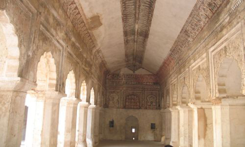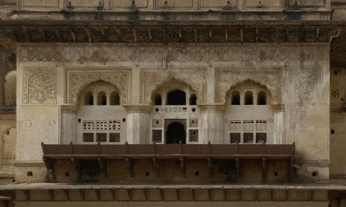 The Orchha Fort complex, which houses a large number of ancient monuments consisting of the fort, palaces, temple and other edifices, is located in the Orchha town in the Indian state of Madhya Pradesh. The fort and other structures within it were built by the Bundela Rajputs starting from early 16th century by King Rudra Pratap Singh of the Orchha State and others who followed him. The fort complex, which is accessed from an arched causeway, leads to a large gateway. This is followed by a large quadrangular open yard surrounded by palaces. These are Raja Mahal or Raja Mandir, Sheesh Mahal, Jahangir Mahal, a temple, gardens and pavilions. The battlements of the fort have ornamentation. Notable architectural features in the fort complex are projected balconies, open flat areas and decorated latticed windows. The fort was built following the founding of the Orchha State in 1501 AD by Rudra Pratap Singh (r. 1501–1531), a Bundela rajput. The palaces and temples within the fort complex were built over a period of time by successive Maharajas of the Orchha State. Of these, the Raja Mandir or Raja Mahal was built by Madhukar Shah who ruled from 1554 to 1591. Jahangir Mahal and Sawan Bhadon Mahal were built during the reign of Vir Singh Deo (r. 1605–1627). The features of "pepper pots and domes" seen in the fort complex are believed to have inspired Lutyens in the architecture of the structures which he built in New Delhi. The fort complex, accessed from an arched causeway, leads to a large gateway followed by a large quadrangular open space which is surrounded by palaces such as Raja Mahal or Raja Mandir, Sheesh Mahal, Jahangir Mahal, a temple, gardens and pavilions. The fort walls have battlements, which have ornamentation. Notable architectural features seen in the fort complex consist of projected balconies, open flat areas and decorated latticed windows. The Raja Mahal (King’s Palace), where the kings and the queens had resided till it was abandoned in 1783, was built in the early part of 16th century. Its exterior is simple without any embellishments but the interior chambers of the palace are elaborately royal in its architectural design, decorated with murals of social and religious themes of gods, mythical animals and people. In the upper floor of the palace there are traces of mirrors in the ceilings and walls. Its windows, arcaded passages and layout plan are designed in such a way that the "sunlight and shadow create areas of different moods and temperatures throughout the day". The interior walls of the Mahal have murals of Lord Vishnu. The Mahal has several secret passages. A part of this Mahal was converted into a temple and named Rama Raja Temple in honour of the god Rama. There is legend associated with naming it as a temple. According to a local legend, the temple was built following Rani Ganeshkuwari, the queen getting a "dream visitation" by Lord Rama directing her to build a temple for Him; while Madhukar Shah was a devotee of Krishna, his wife's dedication was to Rama. Following this a new temple known as the Chaturbuj Temple was approved to be built, and the queen went to Ayodhya to obtain an image of Lord Rama that was to be enshrined in her new temple. When she came back from Ayodhya with the image of Rama, initially she kept the idol in her palace as the Chaturbuj Temple was still under construction. She was, however, unaware of an injunction that the image to be deified in a temple could not be kept in a palace. Once the temple construction was completed and the idol of the lord had to be moved for installation at the Chatrubhuj Temple, it refused to be shifted from the palace. Hence, instead of the Chaturbhuj Temple, the Rama's idol remained in the palace where as the Chaturbhuj Temple remained without an idol in its sanctum. As Rama was worshipped in the palace, part of the palace was converted into the Rama Raja Temple; it is the only shrine in the country where Rama is worshipped as a King. The temple is guarded by a police force and the deity, Lord Rama, is considered as the king and is given a gun salute of honour every day. Sheesh Mahal is flanked on either side by the Raja Mahal and the Jahangir Mahal. This has royal accommodation, which was built for king Udait Singh. It has now been converted into a hotel. The interior of this edifice consists of a huge impressive hall with high ceiling, which is the dining hall. Its recent colour scheme renovations are an eyesore. But staying in two of its royal suites on the upper floor, which provide scenic views of the town, gives the guest a feeling of royalty. Jahangir Mahal is a palace that was exclusively built by Bir Singh Deo in 1605 to humor the Mughal emperor Jahangir who was a guest of the Maharaja for one night only. The palace is built in four levels with elegant architectural features of both Muslim and Rajput architecture. Its layout is a symmetrical square built in the inner courtyard of the fort and has eight large domes. It has a plethora of rooms with arcaded openings, projecting platforms and windows with lattice design work. The roof above top floor of this Mahal is accessed through a steep stairway. It provides picture perfect views of the temples and the Betwa River outside the fort complex. The palace also houses a small archaeological museum. The entrance gate from this palace, which was earlier the main gate and which has carved ornamentation, leads to the royal baths and then to an elegant small dwelling unit built within a garden in typical Mughal architectural style; this had been built exclusively for Rai Parveen, the female escort of the Raja Indrajit; her large-size portrait in a revealing and seductive attire adorns hall in this Mahal. She was a poet and musician. The building is a double storied structure built with bricks, rising to the height of the trees in the well tended garden called Anand Mahal. The garden is laid out with octagonal flower beds and has good network of water sup