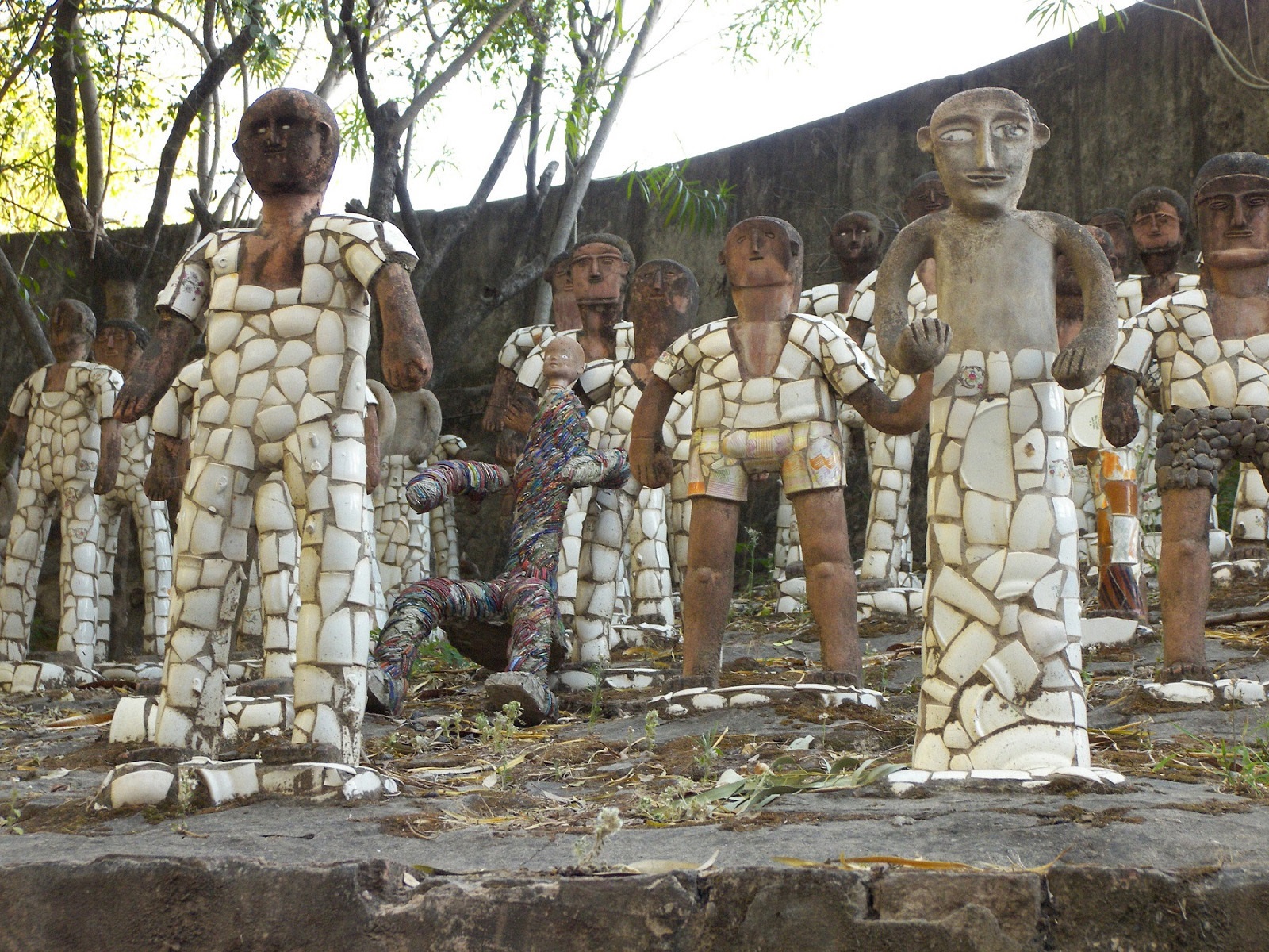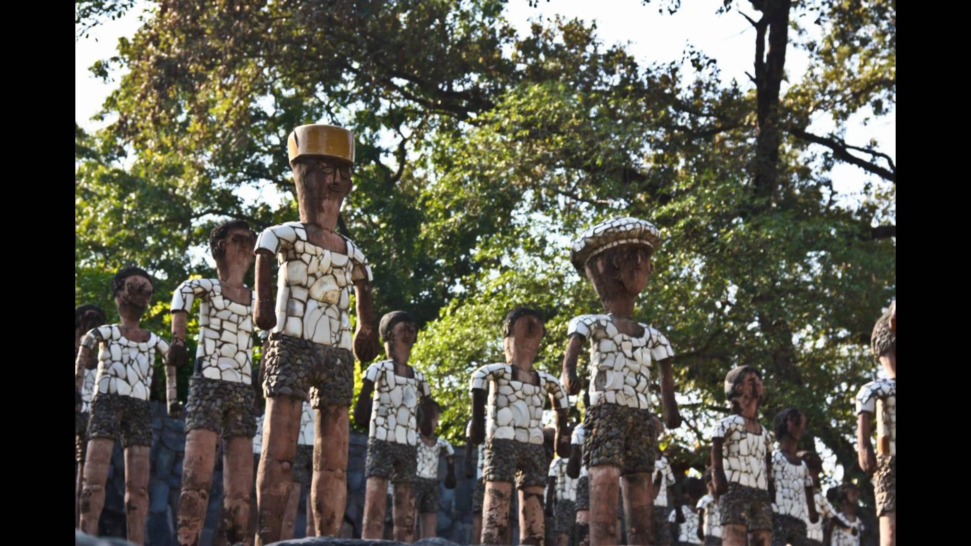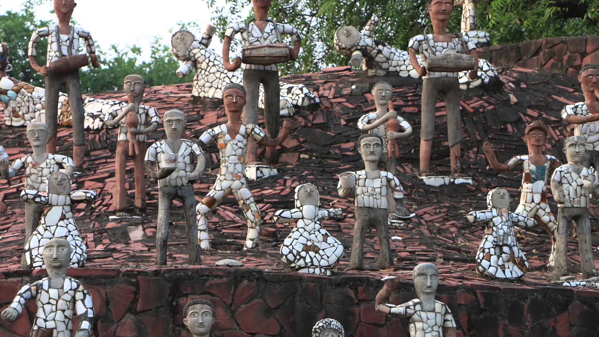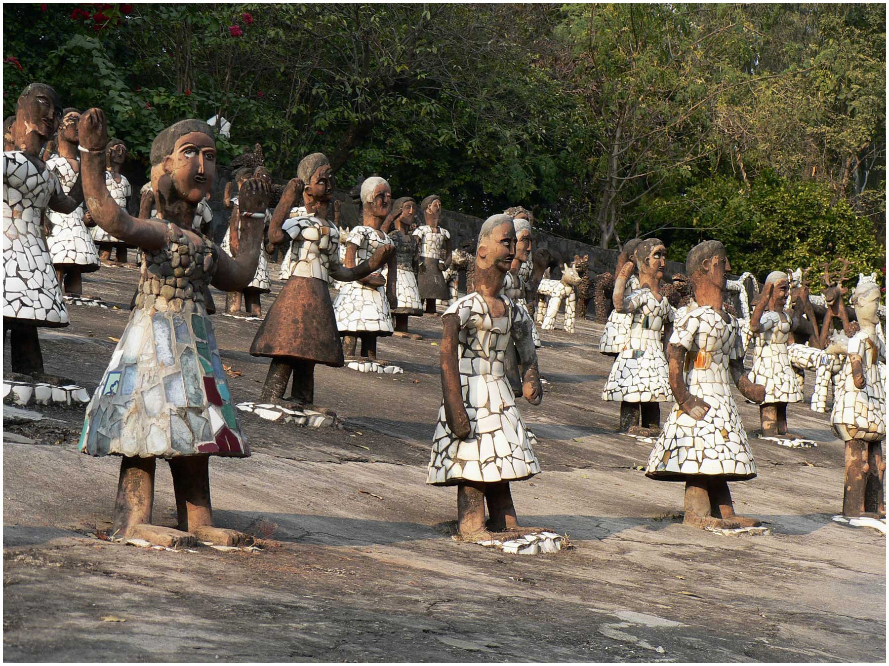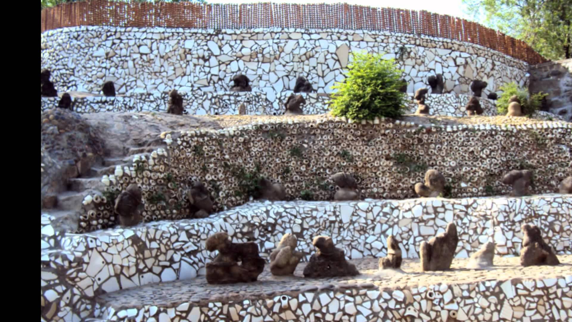 The Rock Garden of Chandigarh is a sculpture garden in Chandigarh, India, also known as Nek Chand's Rock Garden after its founder Nek Chand, a government official who started the garden secretly in his spare time in 1957. Today it is spread over an area of 40 acres (161874.25 m²). It is completely built of industrial and home waste and thrown-away items. Iconic Rock Garden creator Late Nek Chand,The 90-year-old Padma Shri awardee has millions of fans across the globe. It is near Sukhna Lake. It consists of man-made interlinked waterfalls and many other sculptures that have been made of scrap and other kinds of wastes (bottles, glasses, bangles, tiles, ceramic pots, sinks, electrical waste,brokenpipes, etc.) which are placed in walled paths. In his spare time, Nek Chand started collecting materials from demolition sites around the city. He recycled these materials into his own vision of the divine kingdom of Sukrani, choosing a gorge in a forest near Sukhna Lake for his work. The gorge had been designated as a land conservancy, a forest buffer established in 1902 that nothing could be built on. Chand’s work was illegal, but he was able to hide it for 18 years before it was discovered by the authorities in 1975. By this time, it had grown into a 12-acre (49,000 m2) complex of interlinked courtyards, each filled with hundreds of pottery-covered concrete sculptures of dancers, musicians, and animals. His work was in danger of being demolished, but he was able to get public opinion on his side. In 1976 the park was inaugurated as a public space. Nek Chand was given a salary, a title ("Sub-Divisional Engineer, Rock Garden"), and 50 laborers so that he could concentrate full-time on his work. It appeared on an Indian stamp in 1983. The Rock Garden is still made out of recycled materials. With the government’s help, Chand was able to set up collection centers around the city for waste, especially rags and broken ceramics. When Chand left the country on a lecture tour in 1996, the city withdrew its funding, and vandals attacked the park. The Rock Garden Society took over the administration and upkeep of this unique visionary environment. The garden is visited by over 5,000 people daily, with more than 12 million visitors since its inception.