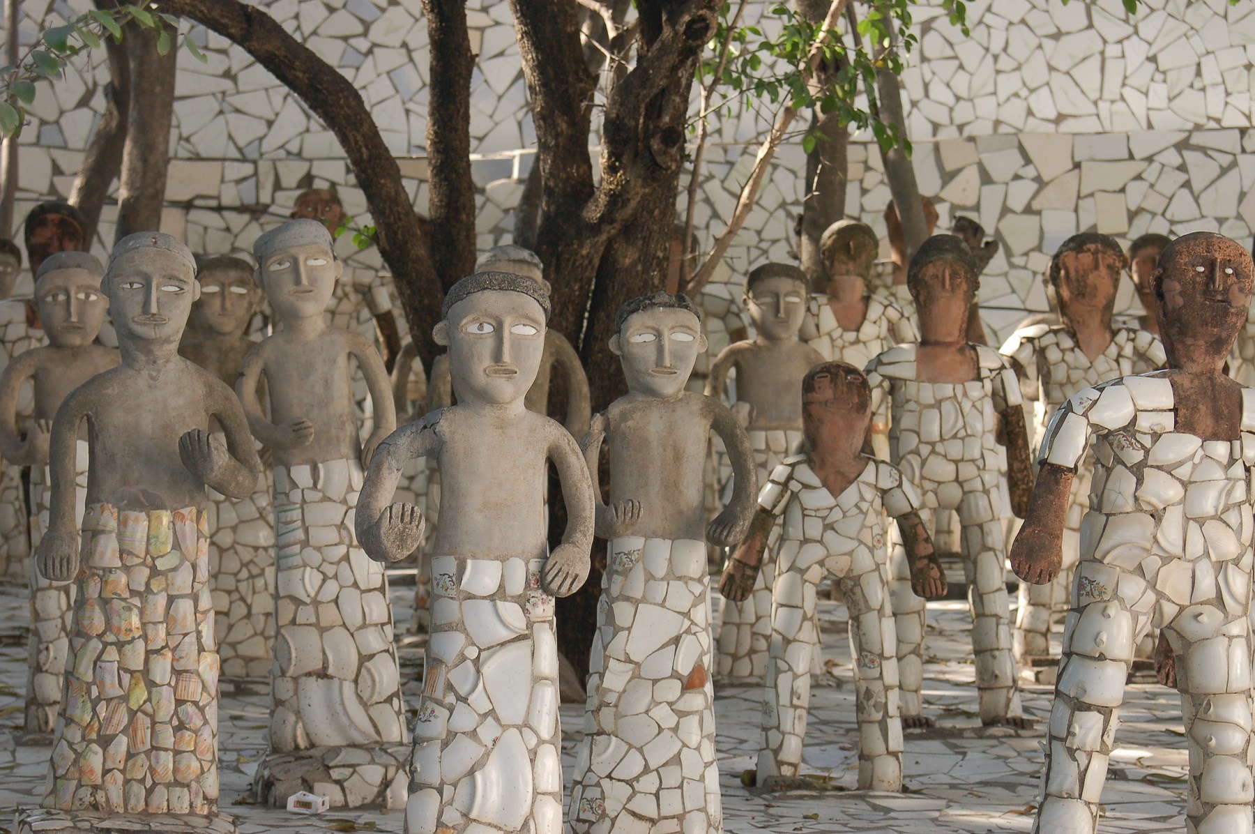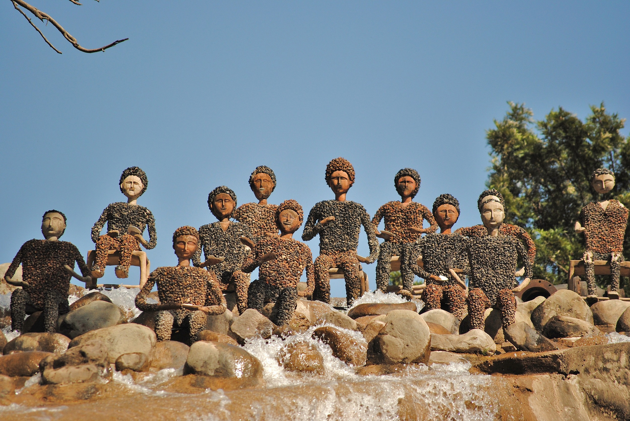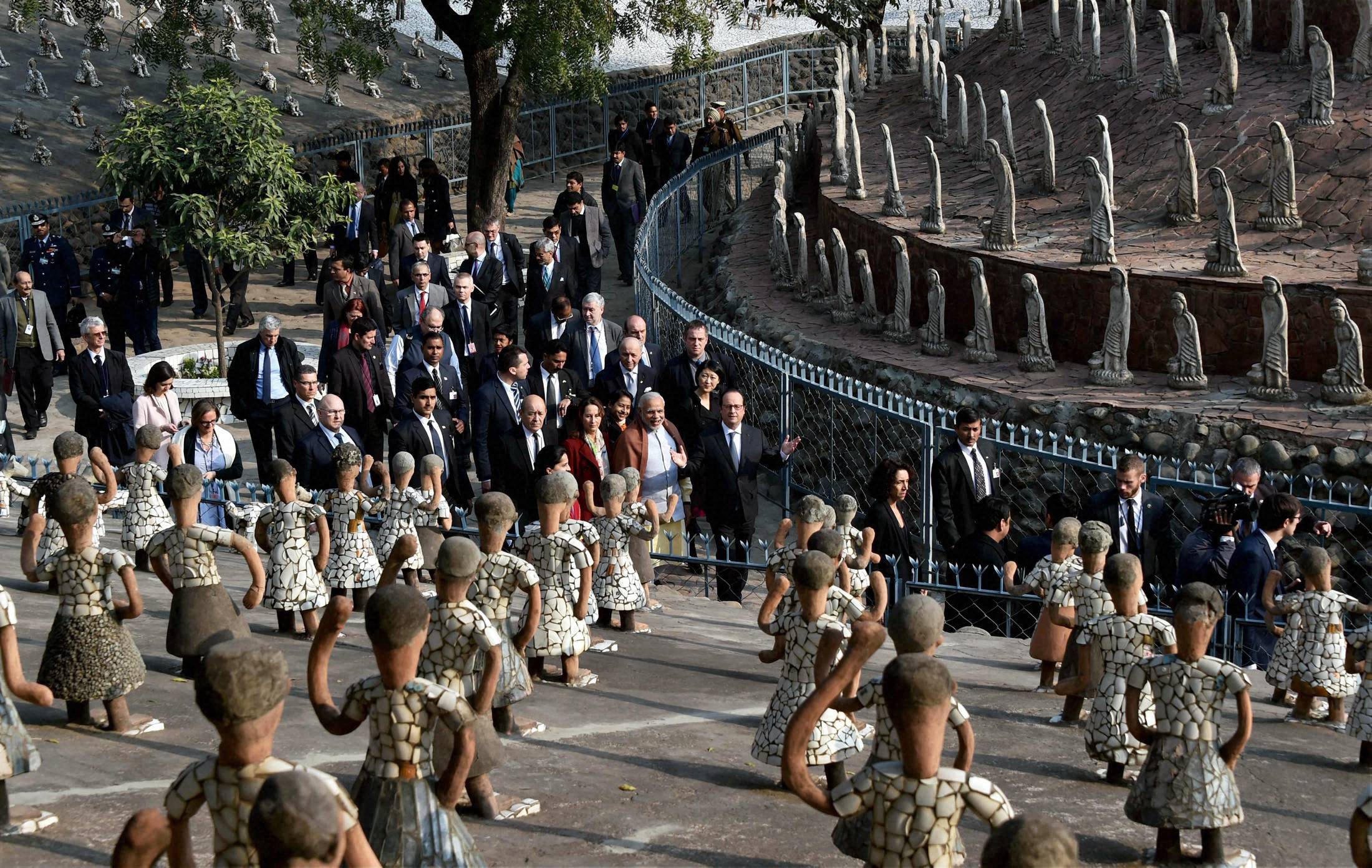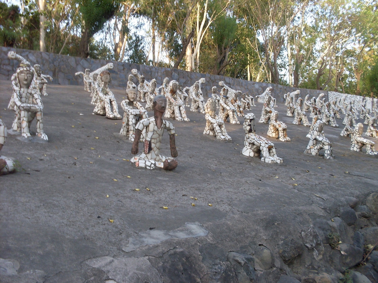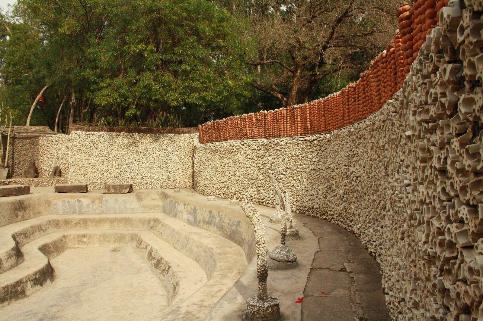 The Rock Garden of Chandigarh is a sculpture garden in Chandigarh, India, also known as Nek Chand's Rock Garden after its founder Nek Chand, a government official who started the garden secretly in his spare time in 1957. Today it is spread over an area of 40 acres (161874.25 m²). It is completely built of industrial and home waste and thrown-away items. Iconic Rock Garden creator Late Nek Chand,The 90-year-old Padma Shri awardee has millions of fans across the globe. It is near Sukhna Lake. It consists of man-made interlinked waterfalls and many other sculptures that have been made of scrap and other kinds of wastes (bottles, glasses, bangles, tiles, ceramic pots, sinks, electrical waste,brokenpipes, etc.) which are placed in walled paths. In his spare time, Nek Chand started collecting materials from demolition sites around the city. He recycled these materials into his own vision of the divine kingdom of Sukrani, choosing a gorge in a forest near Sukhna Lake for his work. The gorge had been designated as a land conservancy, a forest buffer established in 1902 that nothing could be built on. Chand’s work was illegal, but he was able to hide it for 18 years before it was discovered by the authorities in 1975. By this time, it had grown into a 12-acre (49,000 m2) complex of interlinked courtyards, each filled with hundreds of pottery-covered concrete sculptures of dancers, musicians, and animals. His work was in danger of being demolished, but he was able to get public opinion on his side. In 1976 the park was inaugurated as a public space. Nek Chand was given a salary, a title ("Sub-Divisional Engineer, Rock Garden"), and 50 laborers so that he could concentrate full-time on his work. It appeared on an Indian stamp in 1983. The Rock Garden is still made out of recycled materials. With the government’s help, Chand was able to set up collection centers around the city for waste, especially rags and broken ceramics. When Chand left the country on a lecture tour in 1996, the city withdrew its funding, and vandals attacked the park. The Rock Garden Society took over the administration and upkeep of this unique visionary environment. The garden is visited by over 5,000 people daily, with more than 12 million visitors since its inception.