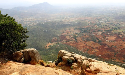 Horsley Hills or Horsleykonda is a series of hills in Andhra Pradesh in Madanapalle taluk of Chittoor district and is about 9 miles from Madanapalle town. The local name of the hill was Yenugu Mallama Konda after a legend of a saintly old woman named Mallamma who lived atop the hill and was fed by elephants (yenugulu). W.D. Horsley, a British collector, built his home around 1870 after whom it is named. In contrast to the surrounding dry, hot and barren country surrounding it the area is well vegetated and cooler climate made it attractive as a hill resort and tourist spot. The native vegetation of the area has been replaced in some parts with dense growths of eucalyptus and plantations of exotic trees. In the past the area had more wildlife including Sambar deer (now reintroduced into the wild), wild boar and sloth bear. More than 133 species of birds have been recorded from the area and these include the endemic Yellow-throated bulbul, first recorded from the area in 1908. Other birds which are rare in the surrounding region include the black eagle and the white-rumped shama. The endemic toad Duttaphrynus hololius has been found here and a ground orchid Diplocentrum recurvum was rediscovered here after nearly a century. Several species of lichen have also been documented from the region. The minimum temperature is around 25 °C and the maximum temperature is 30 °C. As it is the only hill station in Andhra Pradesh, this place is also called "Andhra ooty". Before coming into existence as a hill resort i.e. before the advent of W.D.Horsley, this area was home to the tribes of Yanadis and Chenchus. They rear Punganur breed of cows for livelihood. Today, there are different communities of people on the hills. Some of them run small hotels and others work as jeep drivers for tourists. William D. Horsley was born at Chingleput on 8 September 1834 where his father John Horsley served in the Madras Civil Service from 1817-51. An older brother, Ralph, born in 1831 at Courtallam, was murdered at Bellary in 1856 where he was a Head Assistant Collector. William married Mary Pelly in April 1864 and died in 1899.