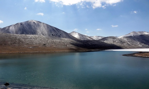 Gurudongmar Lake, also known as Gurudogmar Lake, is one of the highest lakes in the world, located at an altitude of 17,800 ft (5,430 m) in the Indian state of Sikkim. It is a lake which is considered sacred by Buddhists. The lake is named after Guru Padmasambhava, also known as Guru Rinpoche, founder of Tibetan Buddhism who visited the lake in the 8th century. As per Denjong Nye-Yig (The Pilgrim's Guide to The Hidden Land of Sikkim, by Jigme Pawo, reincarnation of Gyalwa Lhatsun Chenpo) and Nay-Sol texts, Gurudongmar Lake, located at an altitude of about 17,000 feet within the Lachen Dzomsa area in North District, Sikkim, is one of the 108 "Tso-Chen" or major holy lakes of Denjong (Sikkim) which are believed to be abodes of local guardian deities. The holy lake is located close to Mt. Khangchen Gyao, also considered sacred by the locals. During the eight century AD, Guru Padmasambhava, also referred to by Buddhists as Guru Rinpoche, hailing from the Swat region in present-day northwest Pakistan, visited Tibet at the invitation of Chogyal (Tibetan emperor) Trisong Deutsen, and introduced the practice of Tantric Buddhism to the Tibetans. On his way back from Tibet, Guru Rinpoche is believed to have visited Sikkim and Gurudongmar Lake was probably the first major landmark that the Guru came across upon his entry into the fabled hidden land of "Denjong"/"Demojong". The word "Dongmar Shab Chakpa" refers to his visit to this place. He recognised the lake as a part of Dorje Nyima/Chorten Nyima, a sacred place of worship in northern Sikkim. It is believed that the Guru, in order to provide drinking water to the local people during winter when the lake freezes, placed his hands on a part of the lake, which miraculously stopped freezing during winter, thereby facilitating in provision of drinking water to the locals. Since then, the water of the lake is considered sacred. Recognising the auspicious omens in the lake, Guru Rinpoche saw them as propitious and favourable signs welcoming his entry into the land of Denjong/Demojong. Devotees believe that by offering prayers at the holy lake, one can be blessed with the birth of a child/children. The lake is not only blessed by Guru Padmasambava but also by Guru Nanak, the spiritual leader of Sikhism while he had passed through this area, and hence regarded as sacred. The high altitude lake which remains frozen during winter months is located in the region of northern Sikkim, in the district of North Sikkim. It is about 5 kilometres (3.1 mi) to the south of the Chinese border. The lake can be reached by road from Lachen via Thangu. It is 190 kilometres (120 mi) away from Gangtok, the capital city of Sikkim. The approach road from Thangu to Gurudongmar passes through a rugged and enchanting terrain with "stony moraine", which has high alpine pastures covered with many rhododendron trees. While Indian tourists are allowed to visit the lake, foreigners need to get a special permit from the Ministry of Home Affairs in Delhi. A legend related to the frozen condition of the lake is linked to the visit of Guru Padmasambhava to the lake, on his way back from Tibet. When he saw the lake he felt that the lake was worthy of veneration as it represented the divine location of Dorje Nyima or Chhoedten Nyima. As the lake remained frozen most of the year with no possibility of providing for drinking water needs, the people of the area appealed to Padmasambhva to help them. Then the guru agreed to help them and placed his hands on a small part of the lake area which stopped freezing during winter thus facilitating the source of drinking water to the people. Since then the lake has been considered sacred and devotees carry this sacred water in containers. According to another legend when Padmasambhava visited the lake he saw an auspicious phenomenon in the lake and then he considered it a good augury to enter the mainland of Sikkim, then known as Demojong. It is now said that the lake grants a boon to any pregnant woman offering prayers at the lake. The lake fed by glaciers is located to the north of the Kanchenjunga range in a high plateau area connected with the Tibetan Plateau. The lake provides one of the source streams which joins the Tso Lahmu and then form the source of Teesta River. China is 5 km (3.1 mi) to the border on the east. The lake remains completely frozen in the winter months from November to Mid-May. The lake has an area of 118 hectares (290 acres) and its peripheral length is 5.34 kilometres (3.32 mi). However, the size of the lake appears small at the place where the devotees offer worship but the larger part of the lake is not visible due to hilly topography obstructing the complete view at this location. The area surrounding the lake, also known as Gurudongmar, is inhabited by Yaks, blue sheep and other wildlife of high altitude. This fresh-water lake, which once used to have very clear water, with even the bed of the lake being visible from the surface, now appears in white colour on account of local pollution. A dispute arose when on the bank of the lake an Indian Army regiment of the Sikhs located at the Indo-China border, considering the lake as the place visited by their saint Guru Nanak, constructed a Gurudwara in 1997–98. This created anger among the Sikkimese people of the area as they considered the Gurudwara as an illegal construction as their ancient sacred lake had been sanctified by the visit of their Guru Padmasambhava. The government of Sikkim then constituted a high level committee to examine the issue and submit a report. Documents furnished to the committee by the Namgyal Institute of Tibetology, Gangtok conclusively established the authentic claim of the local people that it was with out doubt a Buddhist religious place. This was accepted by the committee. The building constructed by the Sikh regiment was then handed over by the army to the Lachen Monastery on 6 July 2001 in the presence of the Sub Divisional Magistrate, Chu