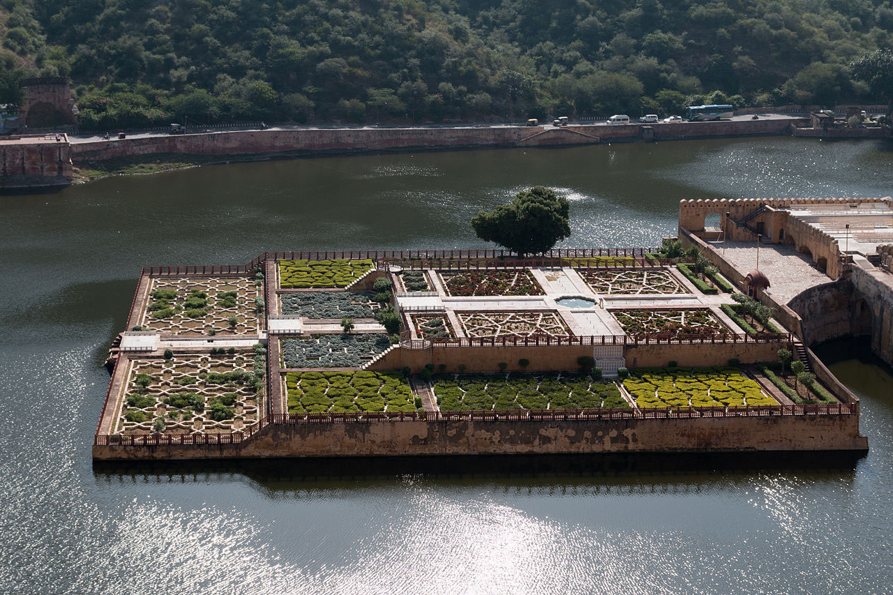 Maota Lake is located in Amber, in the Indian state of Rajasthan. The ancient name of the lake is "Mahavata", but it is commonly known as Maota due to the large trees located near the lake. Maota Lake is located in the south of the city of Amber, about 11 kilometers from the center of Jaipur, at the base of Amber Fort. The lake contains an island in the center, named Kesar Kyari Bagh. The island has a saffron garden, whose plants are said to have been planted by a Maharaja in the 15th century. The Dil-Aaram Bagh is situated on the northern end of the lake. There is no fee to visit the lake, but there is a fee to traverse upward (or ride an elephant) to enter the Amber Fort above. The lake collects rain water flowing down from the nearby hills and was the main source of water for the Amber Fort and common people. In Jaipur, after 7 or 10 days of Ganesh chaturthi, the statue is taken in a procession for immersion in the Maota Lake.