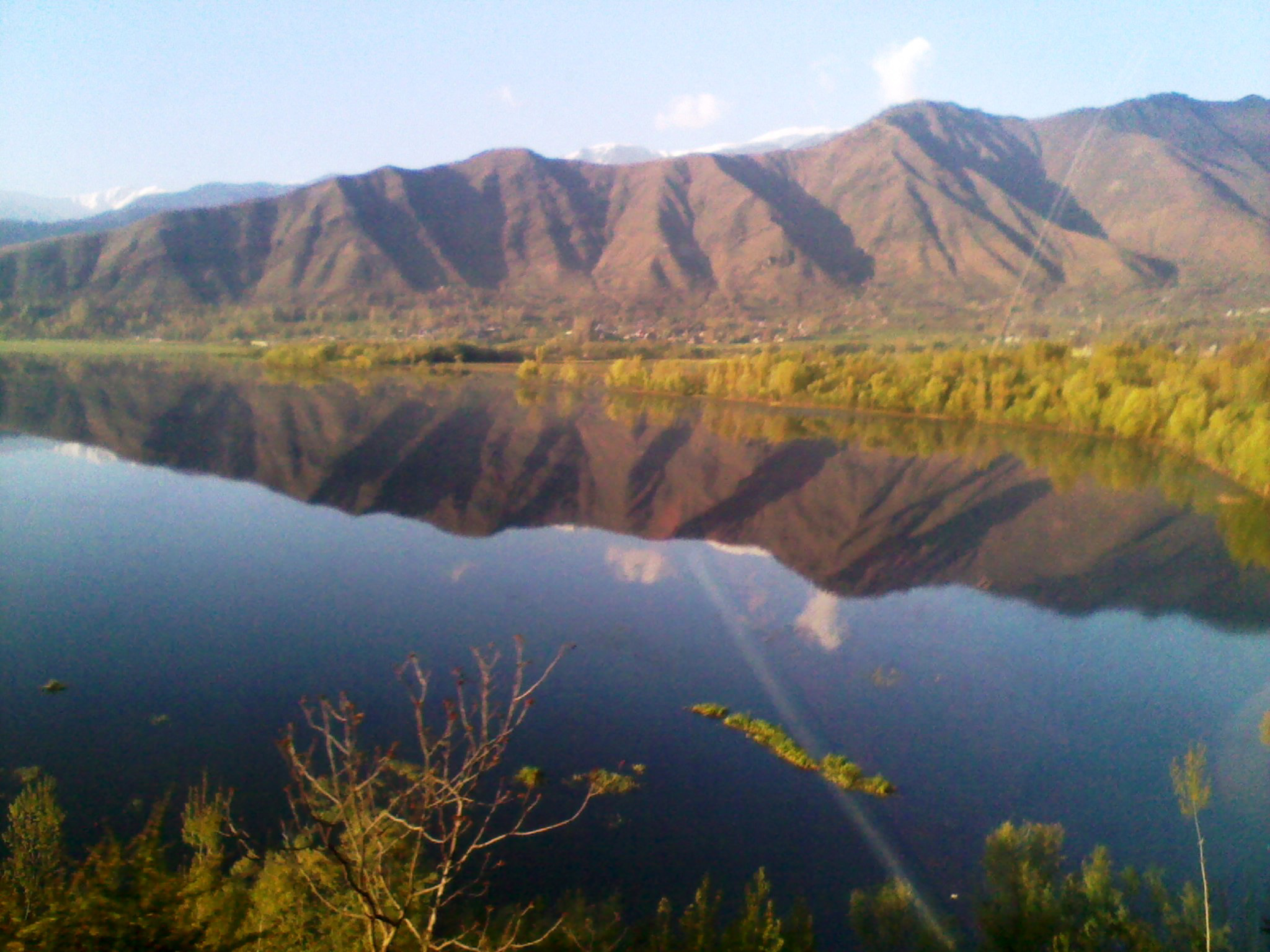 Wular Lake (also spelt Wullar) is one of the largest fresh water lakes in Asia. It is sited in Bandipora district in the Indian state of Jammu and Kashmir. The lake basin was formed as a result of tectonic activity and is fed by the Jhelum River. The lake's size varies seasonally from 12 to 100 square miles (30 to 260 square kilometers). In addition, much of the lake has been drained as a result of willow plantations being built on the shore in the 1950s. In ancient times, Wular Lake was also called Mahapadmasar. Nilamata Purana also mentions it as Mahapadmasaras. Mahapadmasar is referred as Bolor by Al-Biruni {960–1031 AD}. The lake, with its big dimensions and the extent of water, gives rise to high leaping waves in the afternoons, called Ullola in Sanskrit, meaning "stormy leaping, high rising waves". Therefore, it was also being called Ullola. Its corrupted form saw its transition as Bolor by Al-Biruni and over the centuries corrupted further to Wulor or Wular. The origin may also be attributed to a Kashmiri word 'Wul', which means a gap or a fissure, appellation that must have come also during this period. The word Wul {Gap or fissure}, is also indicator of its origin to a fissure or gap created. The lake is one of the 26 Indian wetlands designated as a Ramsar site. However it faces environmental threats including the conversion of large parts of the lake's catchment areas into agriculture land, pollution from fertilizers and animal wastes, hunting of waterfowl and migratory birds, and weed infestation in the lake itself. Fish from Wular Lake make up a significant part of the diet for many thousands of people living on its shores and elsewhere in the Kashmir Valley. More than eight thousand fishermen earn their livelihood from the lake, primarily fishing for the endemic Schizothorax species and the non-native carp. Their catch comprises about 60 percent of the total yield of fish in Kashmir. Hundreds of other local villagers are employed by cooperative societies that trade the fish catch. Many other families harvest plants such as the grass Phragmites and the waterlily-like Nymphoides from the lake for animal fodder. The lake sustains a rich population of birds. Terrestrial birds observed around the lake include the black-eared kite, Eurasian sparrowhawk, short-toed eagle, Himalayan golden eagle, Himalayan monal, chukar partridge, koklass pheasant, rock dove, common cuckoo, alpine swift, Indian roller, Himalayan woodpecker, hoopoe, barn swallow, golden oriole and others. The Tulbul Project is a "navigation lock-cum-control structure" at the mouth of Wular Lake. According to the original Indian plan, the barrage was expected to be of 439 feet (134 m) long and 40 feet (12 m) wide, and would have a maximum storage capacity of 300,000 acre feet (370,000,000 m3) of water. One aim was to regulate the release of water from the natural storage in the lake to maintain a minimum draught of 4.5 feet (1.4 m) in the river up to Baramulla during the lean winter months. The project was conceived in the early 1980s and work began in 1984. There has been an ongoing dispute between India and Pakistan over the Tulbul Project since 1987, when Pakistan objected that it violated the 1960 Indus Waters Treaty. India stopped work on the project that year, but has since pressed to restart construction. The Jhelum River through the Kashmir valley below Wular Lake provides an important means of transport for goods and people. To sustain navigation throughout the year a minimum depth of water is needed. India contends that this makes development of the Tulbul Project permissible under the treaty, while Pakistan maintains that the project is a violation of the treaty. India says suspension of work is harming the interests of people of Jammu and Kashmir and also depriving the people of Pakistan of irrigation and power benefits that may accrue from regulated water releases. Boating, water sports and water skiing have been launched by the Government of India Tourism in collaboration with Kerala Tourism and J&K Tourism. The contract for the operation of the site was awarded in September 2011.
