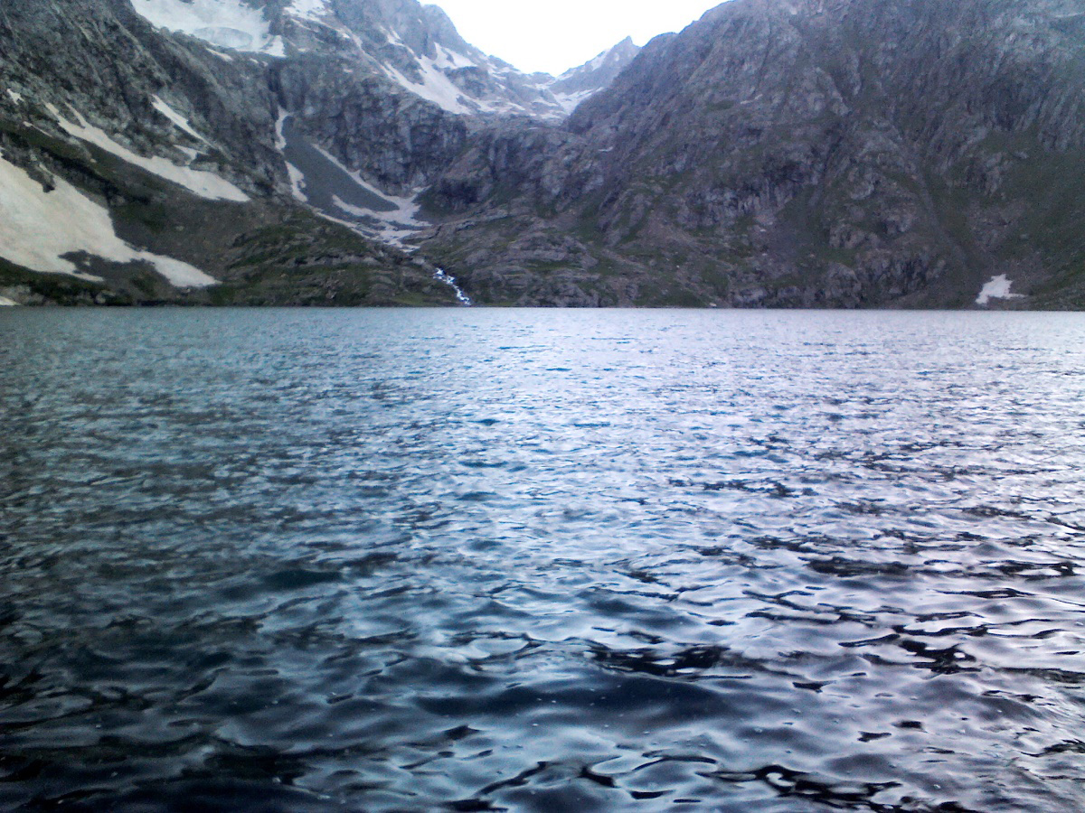 The Vishansar Lake is an alpine high altitude oligotrophic lake situated in the vicinity of Sonamarg at an elevation of 3710 meters. It has a maximum length of 1 kilometer and maximum width of 0.6 kilometers. Vishansar is the shortened word for Vishnusar. This lake holds great importance for Kashmiri Pandits. Vishansar in Kashmiri means the lake of Vishnu is home to many types of fishes among of which is the brown trout. It freezes during winter. During the summer season, the lake is surrounded by green lush meadows where local shepherds graze their flocks of sheep and goat. The Lake with its scenic beauty, snow-covered mountains and their gorges filled with small glaciers and the meadows around, with alpine flowers is an attraction for the trekkers in the Kashmir Valley. It is fed by the Krishansar Lake and glaciers. The Vishansar Lake is the source of Neelum River which flows northwards up to Badoab and then westwards through Gurais along the Line of Control. The Gadsar Lake lies some 9 km in west crossing Gadsar Pass. The Vishansar Lake is situated 115 km. northeast from Srinagar and 35 km from Shitkadi Sonamarg. It can be accessed from Srinagar or Srinagar Airport, 80 km by road NH 1D up to village Shitkadi from which ponies can be hired to cover an alpine trek of 35 km which takes a complete day of trekking and one has to cross the Nichnai Pass of 4100 meters above sea level. The best time to visit the lake is in the month of June to September.