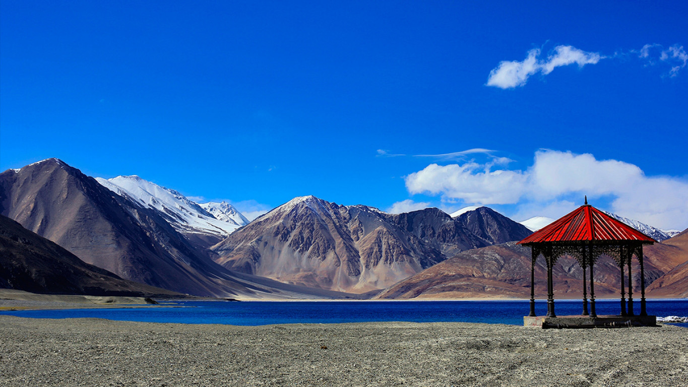 Pangong Tso, Tibetan for "high grassland lake", also referred to as Pangong Lake, is an endorheic lake in the Himalayas situated at a height of about 4,350 m (14,270 ft). It is 134 km (83 mi) long and extends from India to China. Approximately 60% of the length of the lake lies in China. The lake is 5 km (3.1 mi) wide at its broadest point. All together it covers 604 km2. During winter the lake freezes completely, despite being saline water. It is not a part of Indus river basin area and geographically a separate land locked river basin. The lake is in the process of being identified under the Ramsar Convention as a wetland of international importance. This will be the first trans-boundary wetland in South Asia under the convention. Pangong Tso is in disputed territory. The Line of Actual Control passes through the lake. A section of the lake approximately 20 km east from the Line of Actual Control is controlled by China but claimed by India. The eastern end of the lake is in Tibet. After the mid-19th century, Pangong Tso was at the southern end of Johnson Line, an early attempt at demarcation between India and China in the Aksai Chin region. The Khurnak Fort lies on the northern bank of the lake, halfway of Pangong Tso. The Chinese has controlled the Khurnak Fort area since 1952. To the south is the smaller Spanggur Tso lake. On October 20, 1962, Pangong Tso saw military action during the Sino-Indian War, successful for the Communist People's Liberation Army. Pangong Tso is still a delicate border point along the Line of Actual Control. Incursions from the Chinese side are common. The brackish water of the lake has very low micro-vegetation. Guides report that there are no fish or other aquatic life in the lake, except for some small crustaceans. On the other hand, visitors see numerous ducks and gulls over and on the lake surface. There are some species of scrub and perennial herbs that grow in the marshes around the lake. The lake acts as an important breeding ground for a variety of birds including a number of migratory birds. During summer, the Bar-headed goose and Brahmini ducks are commonly seen here. The region around the lake supports a number of species of wildlife including the kiang and the Marmot. Formerly, Pangong Tso had an outlet to Shyok River, a tributary of Indus River, but it was closed off due to natural damming. Two streams feed the lake from the Indian side, forming marshes and wetlands at the edges. Strand lines above current lake level reveal a 5 m (16 ft) thick layer of mud and laminated sand, suggesting the lake has shrunken recently in geological scale. No fish have been observed in the lake, however in the stream coming from South-eastern side (Cheshul nalla),three fish species (Schizopygopsis stoliczkae, Triplophysa stoliczkae and Triplophysa gracilis) have been reported (Bhat et al., 2011). The low biodiversity in the lake has been reported as being due to high salinity and harsh environmental conditions (Bhat et al., 2011). Pangong Tso can be reached in a five-hour drive from Leh, most of it on a rough and dramatic mountain road. The road crosses the villages of Shey and Gya and traverses the Chang La, where army sentries and a small teahouse greet visitors. The road down from Chang La leads through Tangste and other smaller villages, crossing river called Pagal Naala or "The Crazy Stream". The spectacular lakeside is open during the tourist season, from May to September. An Inner Line Permit is required to visit the lake as it lies on the Sino-Indian Line of Actual Control. While Indian nationals can obtain individual permits, others must have group permits (with a minimum of three persons) accompanied by an accredited guide; the tourist office in Leh issues the permits for a small fee. For security reasons, India does not permit boating.