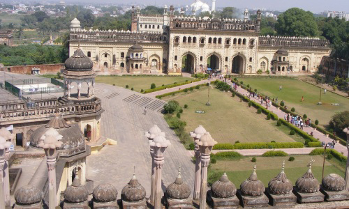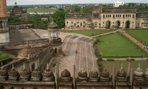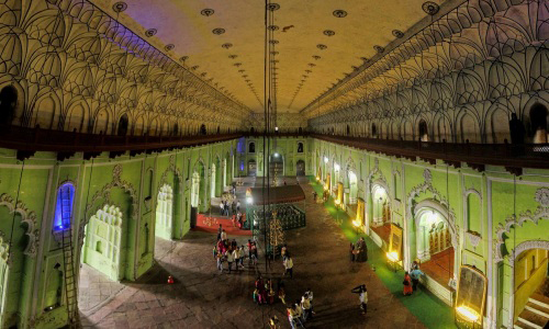 Bara Imambara is an imambara complex in Lucknow, India, built by Asaf-ud-Daula, Nawab of Awadh, in 1784. It is also called the Asafi Imambara. Bara means big, and an imambara is a shrine built by Shia Muslims for the purpose of Azadari. The Bara Imambara is among the grandest buildings of Lucknow. The complex also includes the large Asfi mosque, the bhul-bhulaiya (the labyrinth), and bowli, a step well with running water. Two imposing gateways lead to the main hall. Construction of Bara Imambara was started in 1785, a year of a devastating famine, and one of Asaf-ud-Daula's objectives in embarking on this grandiose project was to provide employment for people in the region for almost a decade while the famine lasted. It is said that ordinary people used to work in the day building up the edifice, while noblemen and other elite worked at night to break down anything that was raised that day. It was a project that preceded a Keynesian like intervention for employment generation. Construction of the Imambara was completed in 1791. Estimated cost of building the Imambara ranges between half a million rupees to a million rupees. Even after completion, the Nawab used to spend between four and five hundred thousand rupees on its decoration annually. The architecture of the complex reflects the maturation of ornamented Mughal design, namely the Badshahi Mosque - it is one of the last major projects not incorporating any European elements or the use of iron. The main imambara consists of a large vaulted central chamber containing the tomb of Asaf-ud-Daula. At 50 by 16 meters and over 15 meters tall, it has no beams supporting the ceiling and is one of the largest such arched constructions in the world. There are eight surrounding chambers built to different roof heights, permitting the space above these to be reconstructed as a three-dimensional labyrinth with passages interconnecting with each other through 489 identical doorways. This part of the building, and often the whole complex, may be referred to as the Bhulbhulaya. Known as a popular attraction, it is possibly the only existing maze in India and came about unintentionally to support the weight of the building which is constructed on marshy land. Asaf-ud-Daula also erected the 18 meter (59 foot) high Rumi Darwaza, just outside. This portal, embellished with lavish decorations, was the Imambara's west facing entrance. The design of the Imambara was obtained through a competitive process. The winner was a Delhi architect Kifayatullah, who also lies buried in the main hall of the Imambara. It is another unique aspect of the building that the sponsor and the architect lie buried beside each other.The roof of Imambara is made up from the rice husk which make this Imambara a unique building. There is also a blocked (tunnel) passageway which, according to legends, leads through a mile-long underground passage to a location near the Gomti river. Other passages are rumoured to lead to Faizabad (the former seat of power of the Nawabs), Allahabad and even to Delhi. They exist but have been sealed after a period of long disuse as well as fears over the disappearance of people who had reportedly gone missing, while exploring.