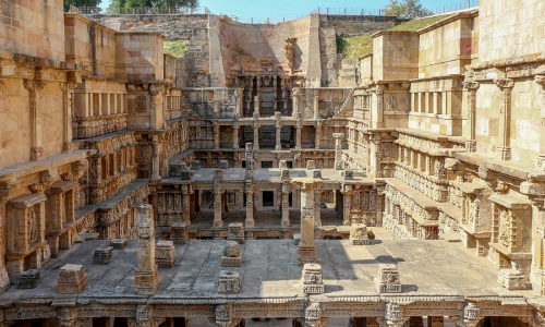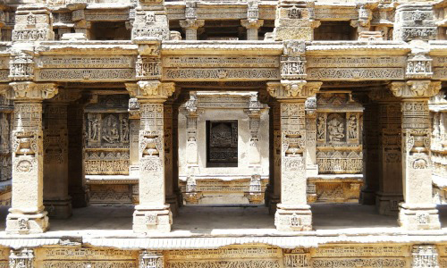 Rani ki vav is an intricately constructed stepwell situated in the town of Patan in Gujarat, India. It is located on the banks of Saraswati River. Rani ki vav was built as a memorial to an 11th century AD king. It was added to the list of UNESCO's World Heritage Sites on 22 June 2014. Stepwells are a distinctive form of subterranean water resource and storage systems on the Indian subcontinent, and have been constructed since the third millennium BC. Rani ki vav was built in the complex Maru-Gurjara architectural style with an inverted temple and seven levels of stairs and holds more than 500 principle sculptures. Rani ki Vav bagged the title of “Cleanest Iconic Place” in India at the Indian Sanitation Conference (INDOSAN) 2016 in New Delhi in October 2016. The monument was felicitated at the conference, inaugurated by Prime Minister Narendra Modi. Rani ki vav, or Ran-ki vav (Queen’s step well) was constructed during the rule of the Solanki dynasty. It is generally assumed that it was built in the memory of Bhima I (r. c. 1022–1064) by his widowed queen Udayamati and probably completed by Udayamati and Karandev after his death. A reference to Udayamati building the monument is in Prabandha Chintamani, composed by the Jain monk Merunga Suri in 1304 AD. The stepwell was later flooded by the nearby Saraswati River and silted over until the late 1980s. When it was excavated by the Archaeological Survey of India, the carvings were found in pristine condition. This magnificent east-facing step well measures approximately 64 m long, 20 m wide & 27 m deep. A stepped corridor compartmented at regular intervals pillared multistory pavilions is a unique feature. It was one of the largest and the most sumptuous structures of its type. It became silted up and much of it is not visible now, except for some rows of sculptured panels in the circular part of the well. Among its ruins one pillar still stands which is an excellent example of this period of design. A part only of the west well is extant from which it appears that the wall had been built of brick and faced with stone. From this wall project vertical brackets in pairs, which supported the different galleries of the well shaft proper. The bracketing is arranged in tiers and is richly carved. The minute and exquisite carving of this vav is one of the finest specimens of its kind. Befitting its name, the Rani-Ki-Vav is now considered to be the queen among step wells of India. There is also a small gate below the last step of the step well, with a 30 kilometre tunnel, currently blocked by stones and mud) which leads to the town of Sidhpur near Patan. It was used as an escape gateway for the king, who built the step well in the times of defeat. Most of the sculptures are in devotion to Vishnu, in the forms of Dus-Avatars Kalki, Rama, Krishna, Narsinh, Vaman, Varahi and others representing their return to the world. Nagkanya, Yogini beautiful women – Apsara showcasing 16 different styles of make-up to look more attractive called Solah-shringar. Around 50–60 years back there were ayurvedic plants around this area, and the water accumulated in Rani ki vav was considered to be helpful for viral disease, fever etc. The vavs of Gujarat are not merely sites for collecting water and socializing, but also hold great spiritual significance. Originally, the vavs of Gujarat were constructed quite simply, but became more intricate over the years, perhaps to make explicit the ancient concept of the sanctity of water with the addition of carved stone deities. Thus visitors enter Rani Ki Vav as if it is an inverted temple, where one steps down various levels to the water. The steps begin at ground level, leading you down through the cool air through several pillared pavilions to reach the deep well below. There are more than 800 elaborate sculptures among seven galleries. The central theme is the Dasavataras, or ten incarnations of Vishnu, including Buddha. The avatars are accompanied by sadhus, Brahmins, and apsaras (celestial dancers), painting their lips and adorning themselves. At water level you come to a carving of Sheshashayi-Vishnu, in which Vishnu reclines on the thousand-hooded serpent Shesha, where it is said he rests in the infinity between ages.