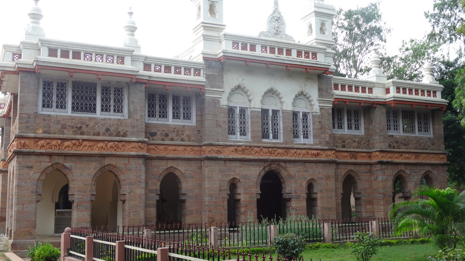 The Bapu Museum (formerly: Victoria Jubilee Museum) is an archaeological museum, located at M. G. Road of Vijayawada. It was renamed in the memory of the renowned film director, illustrator, cartoonist and author Bapu (film director). The museum is maintained by the Archaeological department and has large collection of sculptures, paintings and artifacts of Buddhist and Hindu relics, with some of them as old as 2nd and 3rd Centuries. The structure of building is an Indo-European style of architectural and is more than a hundred years old structure. The museum was created as part of the celebrations of the Golden Jubilee of Queen Victoria in 1887. The foundation stone was laid by Robert Sewell, District Collector of Krishna district, on 27 June 1887. Sri Pingali Venkayya presented a tri-colour flag to Mahatma Gandhi at this location in 1921. The building initially housed industrial exhibitions. It was converted to an archaeological museum under the auspices of the Department of Archaeology and Museums, Government of Andhra Pradesh, in 1962. The museum has historical galleries, stone cut writings, coins, swords, body armour, shields, arms, ornamentation, etc., used by kings. A standing Buddha of white limestone of Alluru (3rd–4th century), Lord Shiva and Goddess Durga as slaying the buffalo demon, Mahishasura (2nd century) can also be found at the museum.